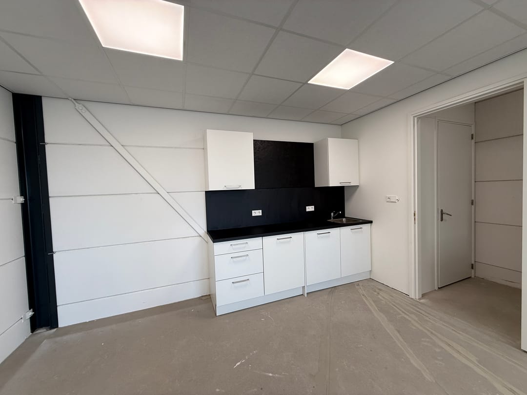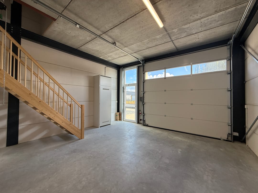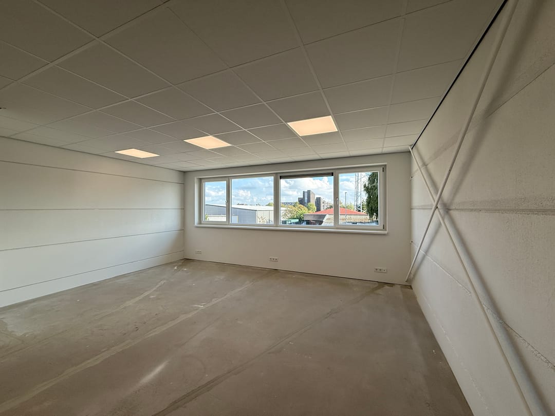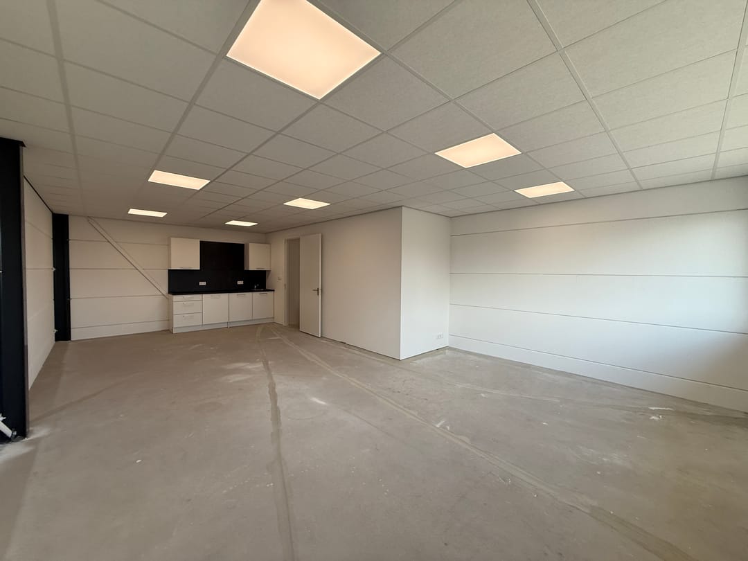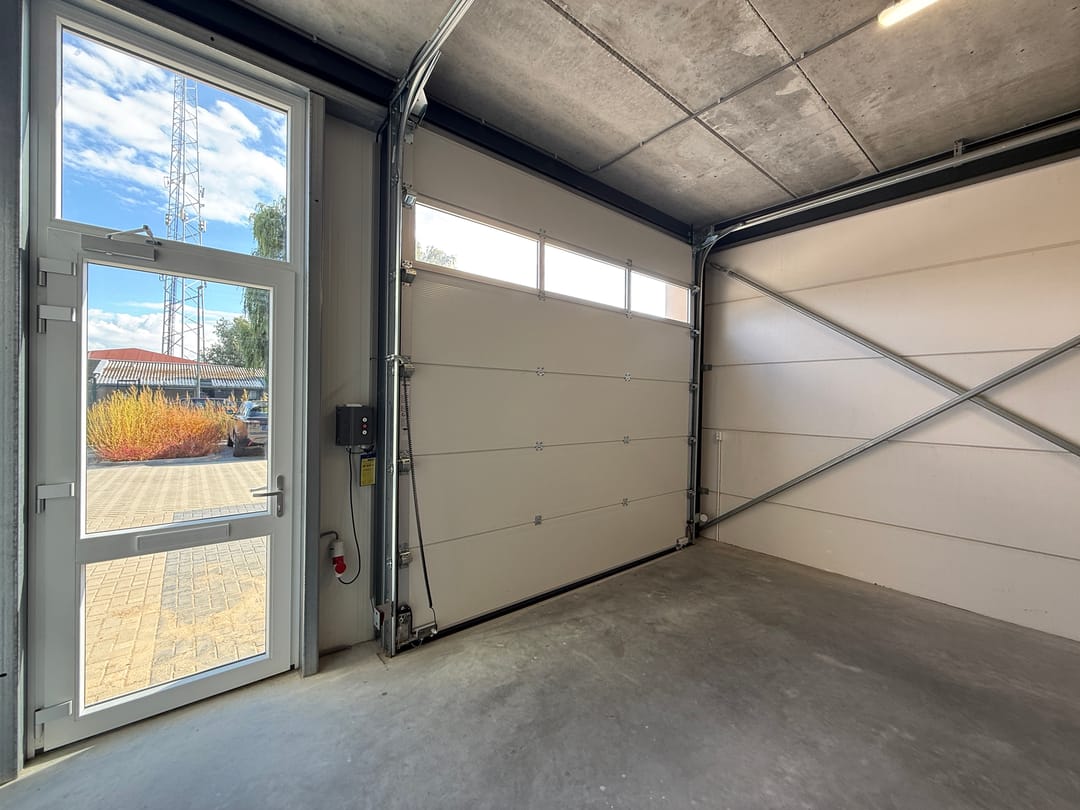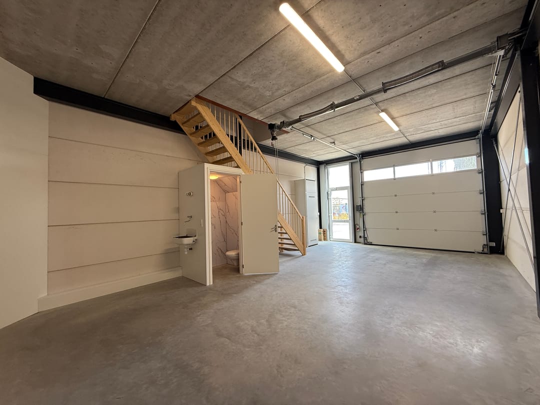 - Airconditioning, overheaddeuren, krachtstroom, betonvloer, toilet, pantry, inbouwarmaturen en te openen ramen