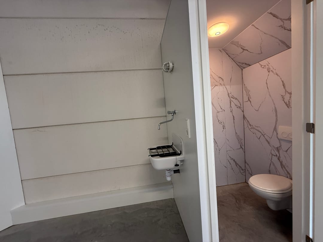 * afgewerkte toiletruimte;