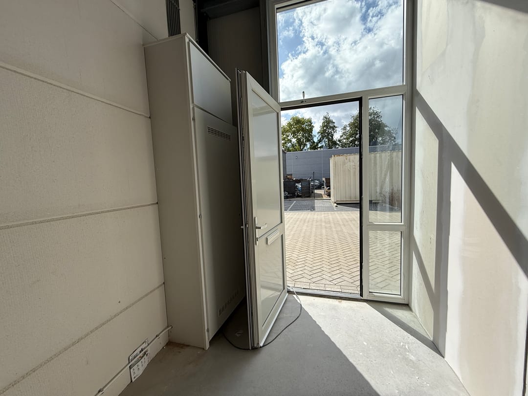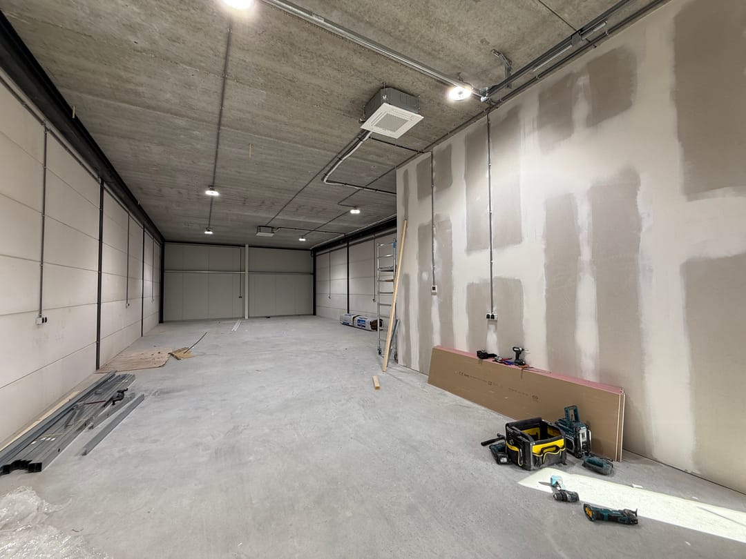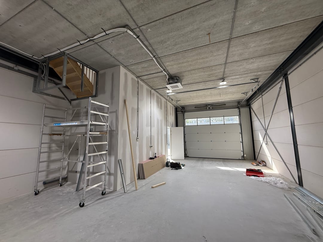 - Overheaddeuren, krachtstroom, betonvloer, toilet, pantry, airconditioning, inbouwarmaturen en te openen ramen