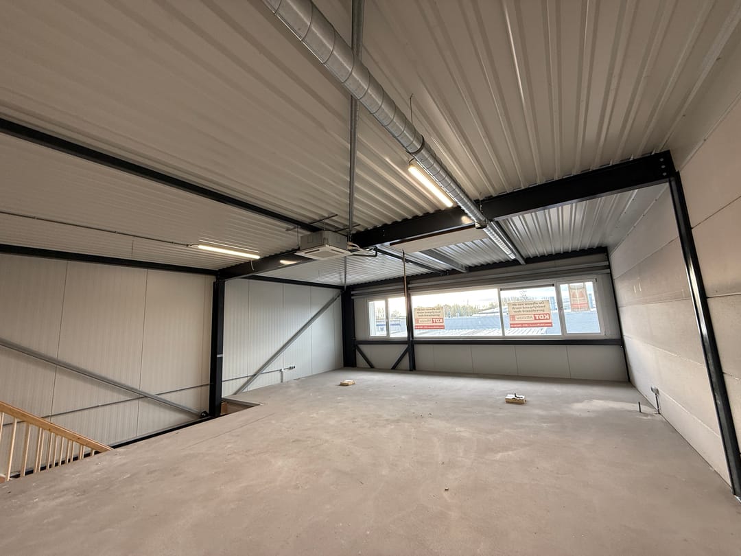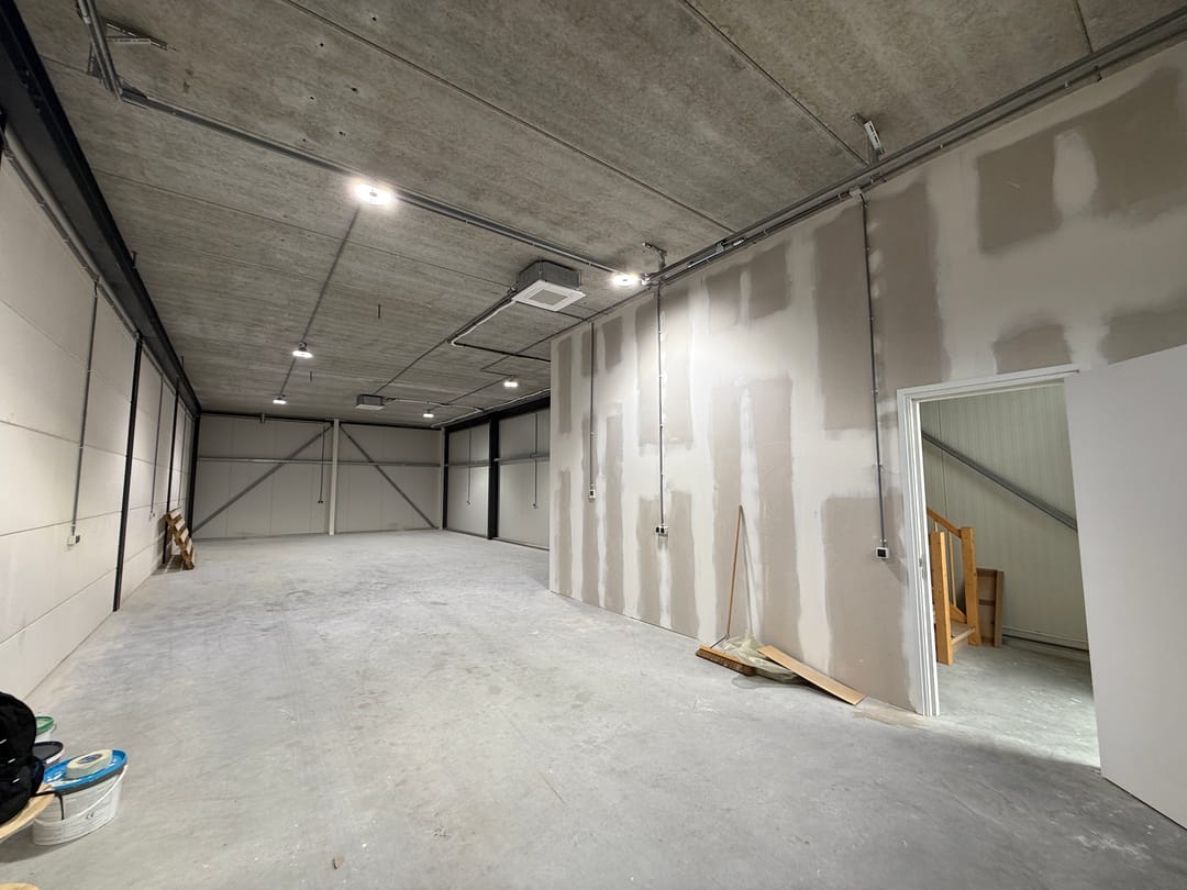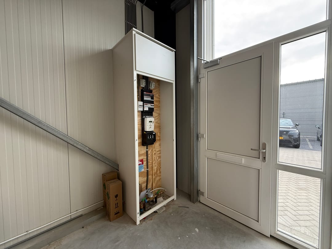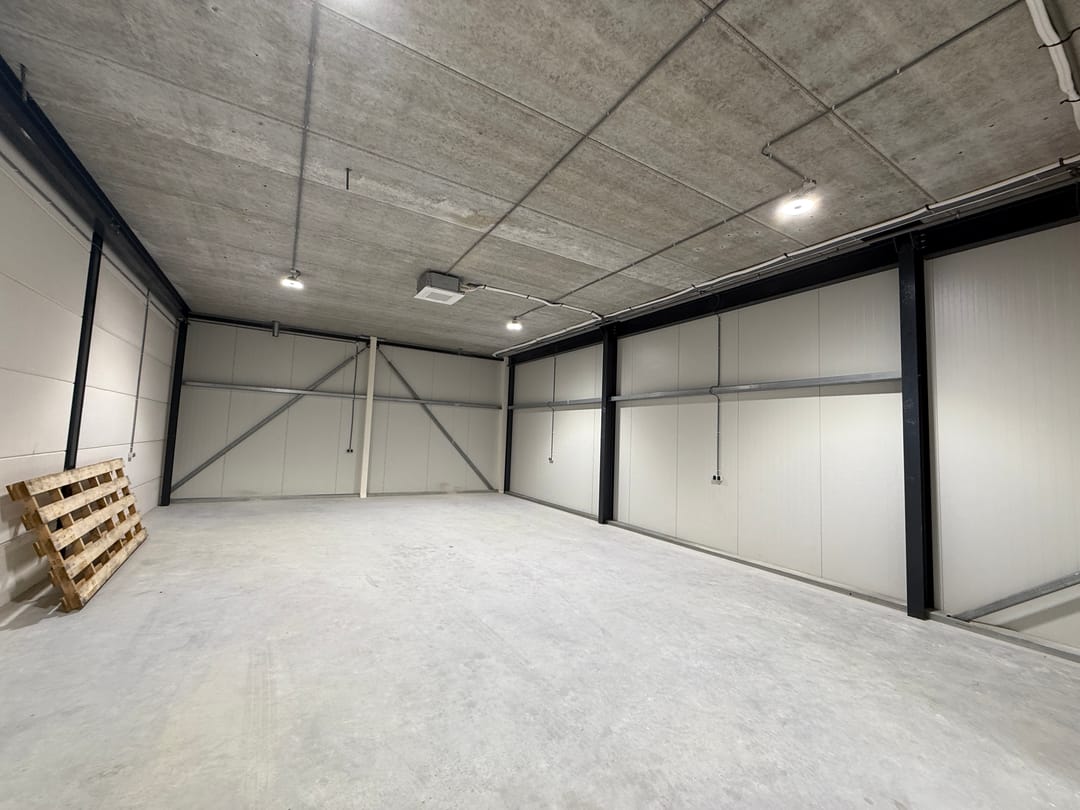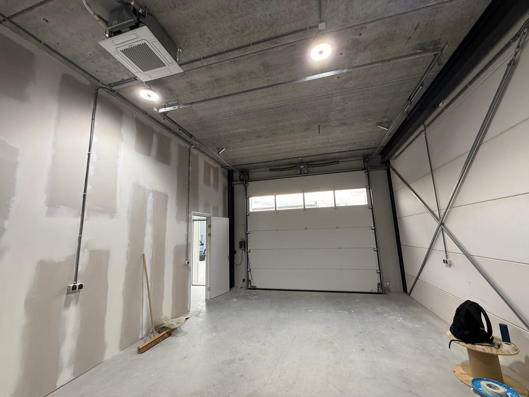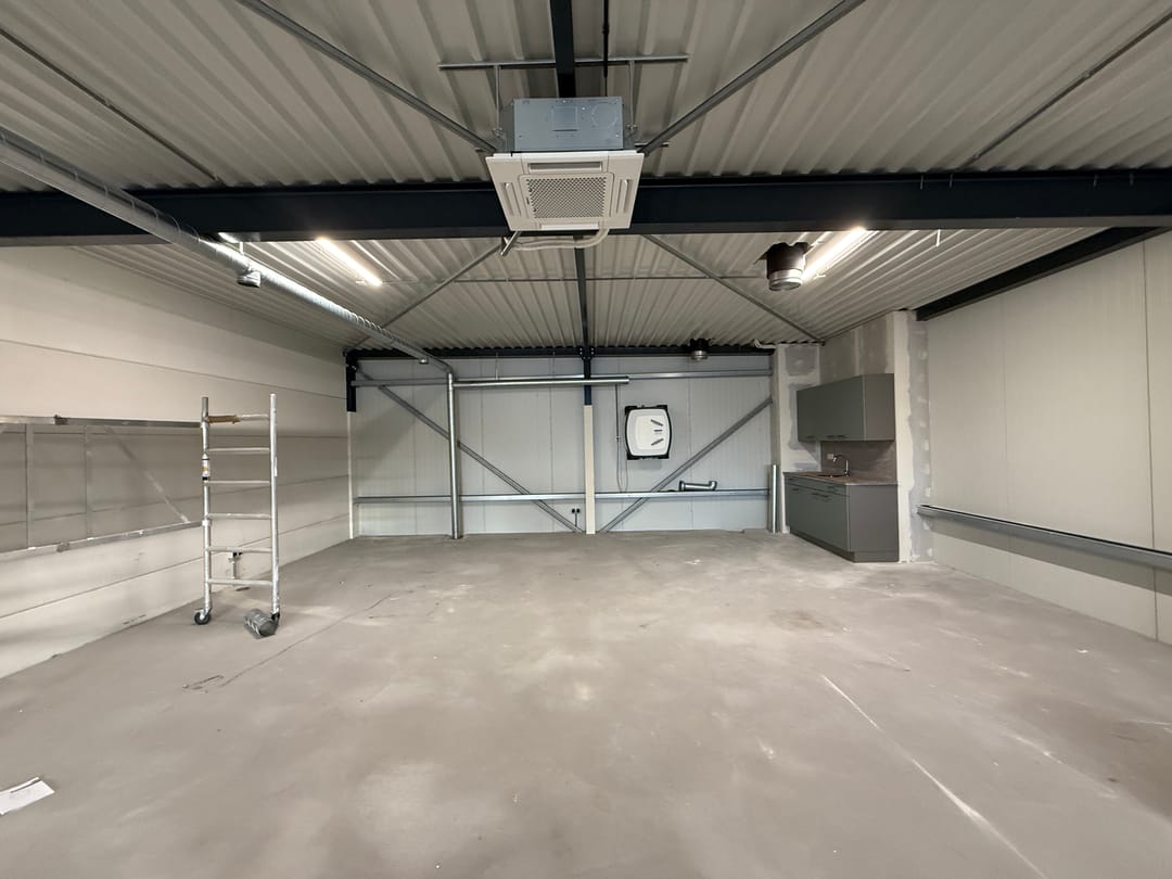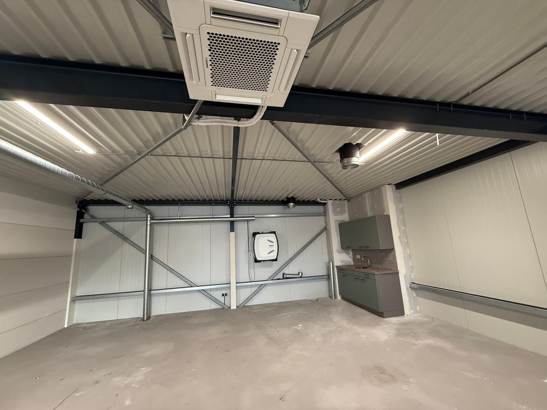 - Overheaddeuren, krachtstroom, betonvloer, toilet, pantry, airconditioning, inbouwarmaturen en te openen ramen