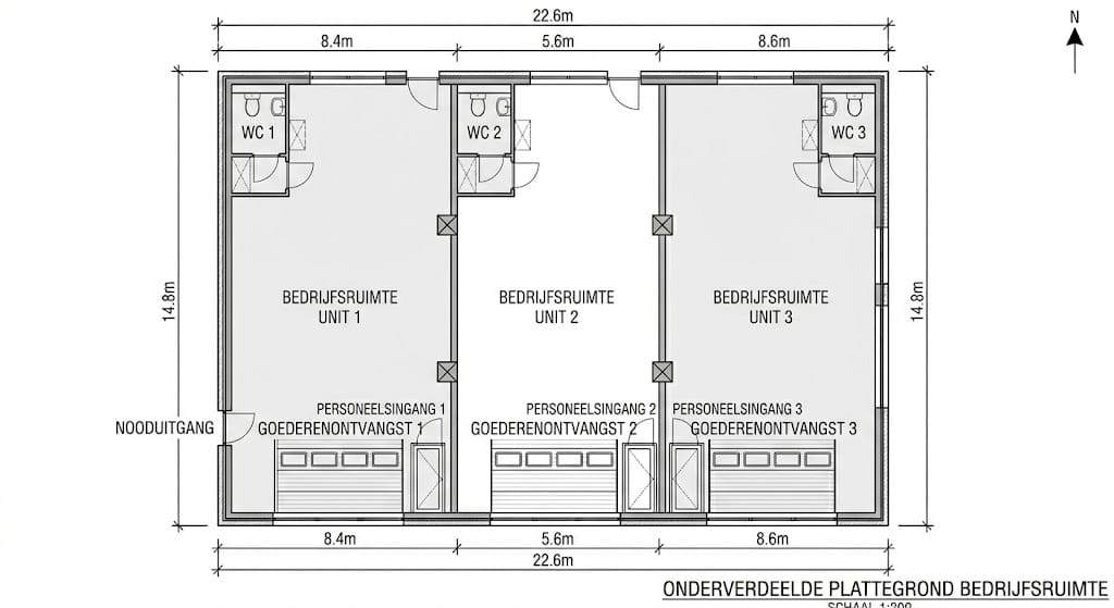- Geschikt voor o.a. opslag, werkplaats of lichte bedrijfsactiviteiten
