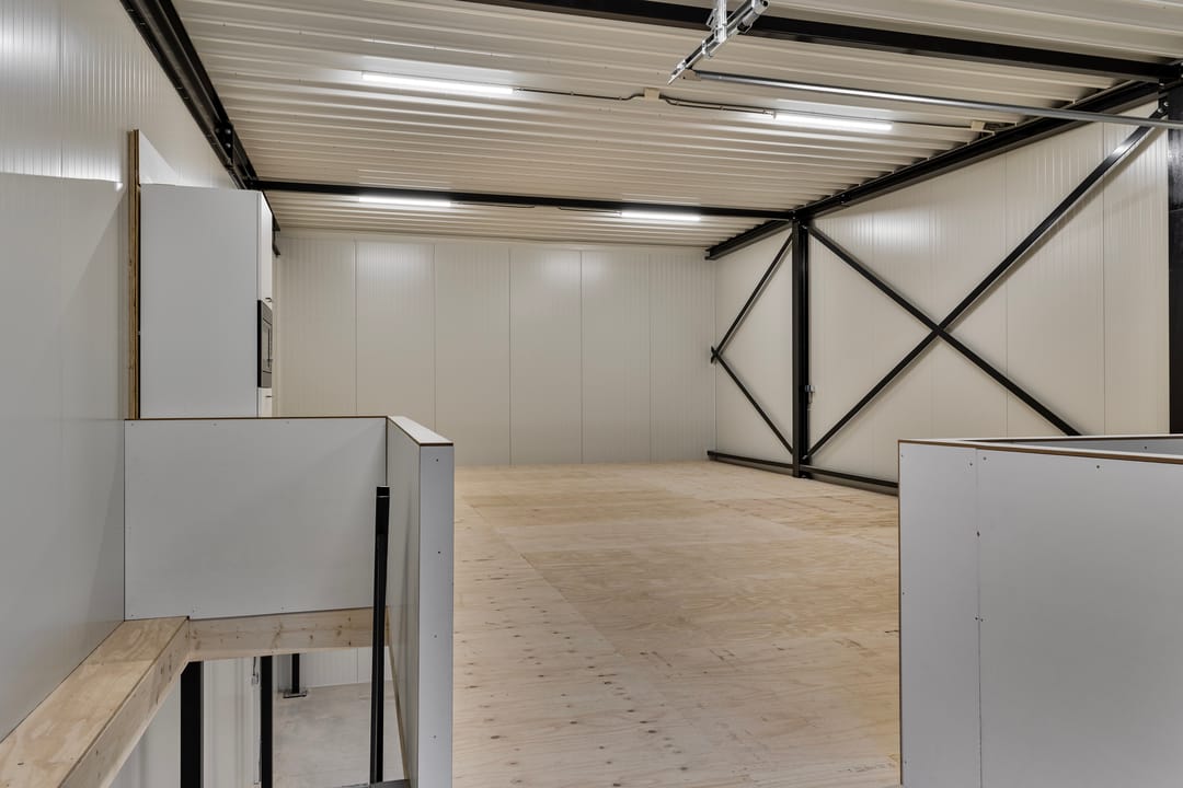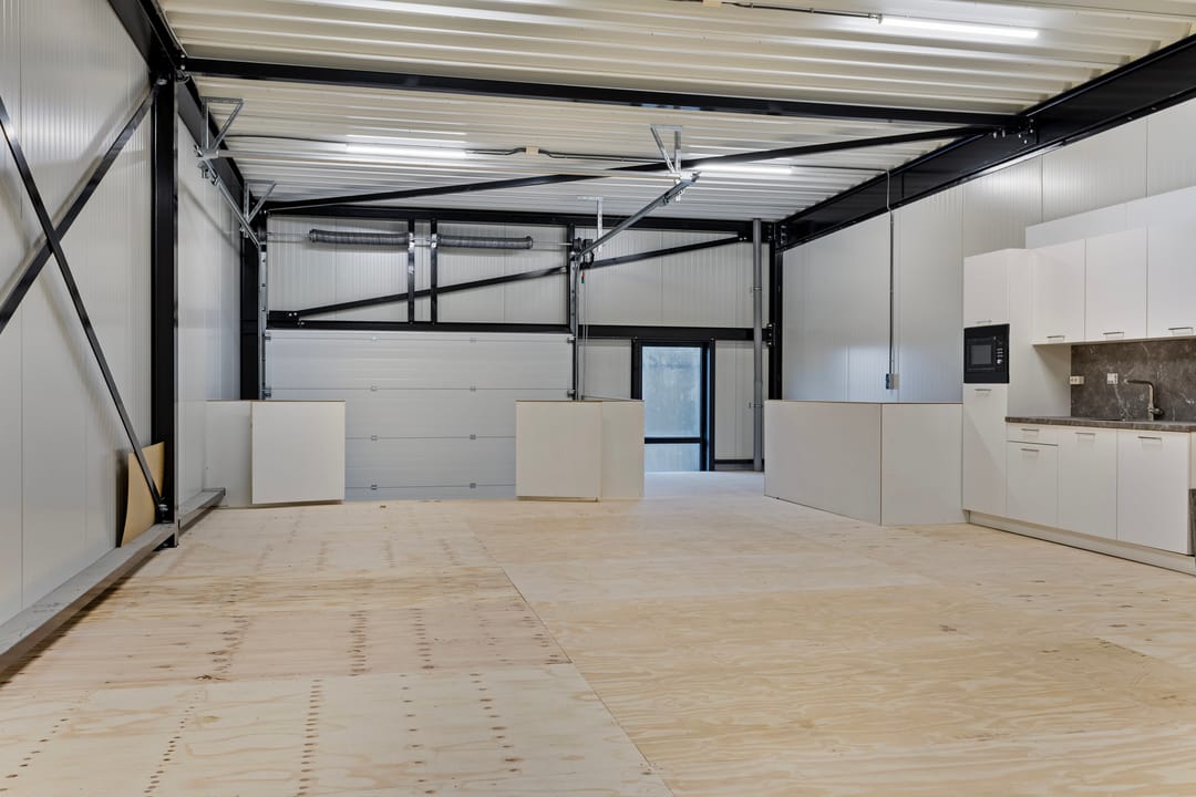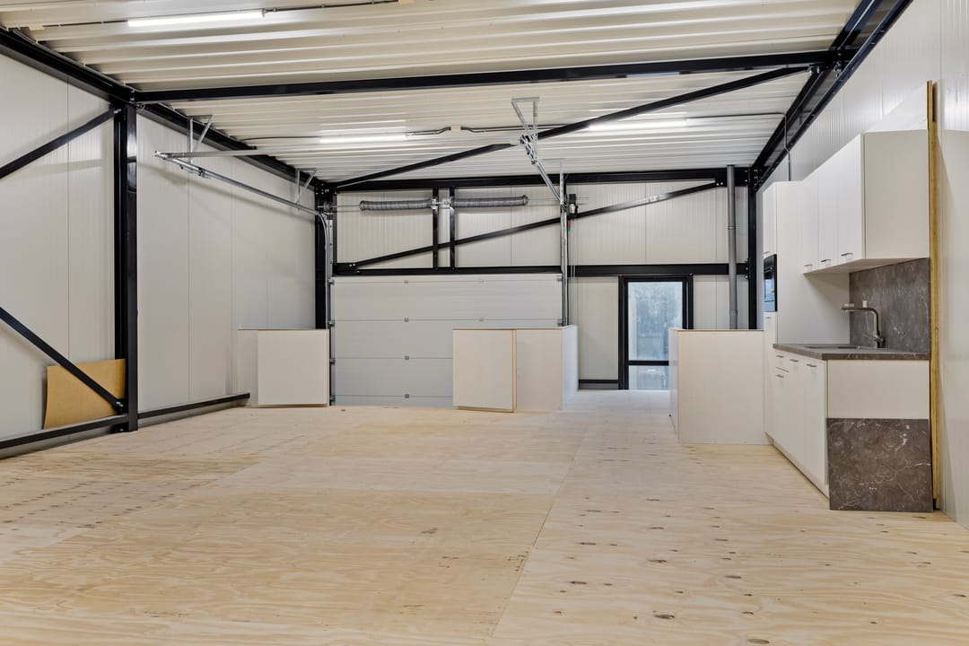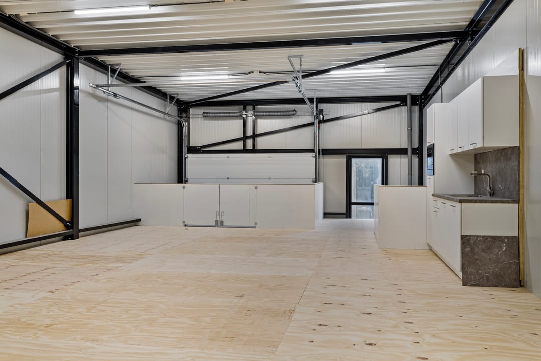 - Lichtstraten, overheaddeuren, betonvloer, toilet en pantry