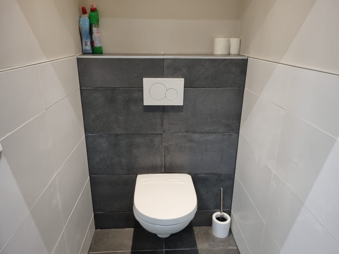 - Betonvloer (hal aan de voorzijde is afgewerkt met vloeistof dichte coating)