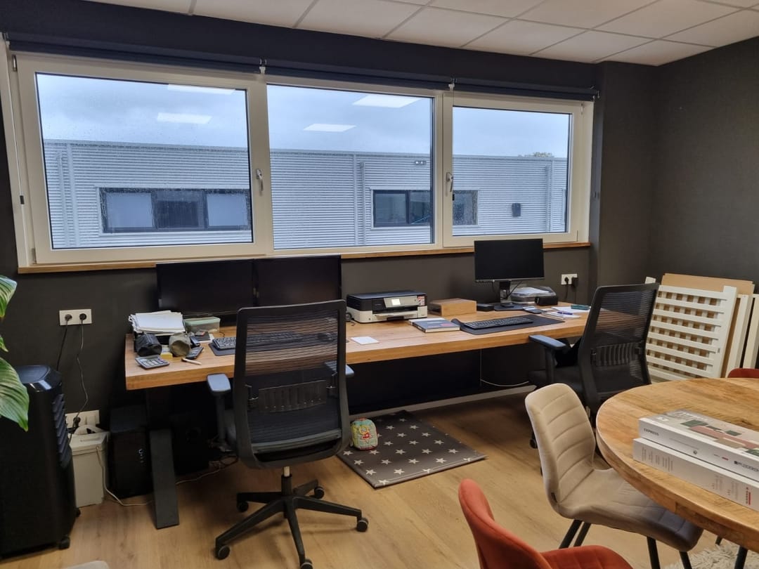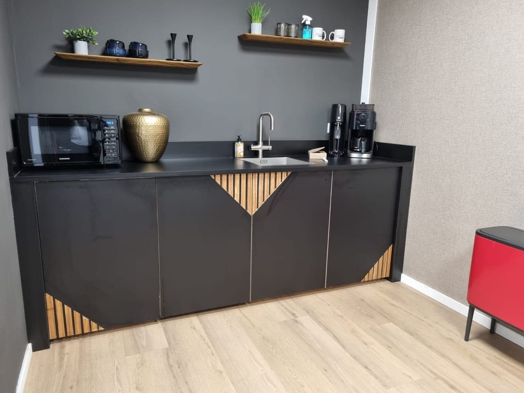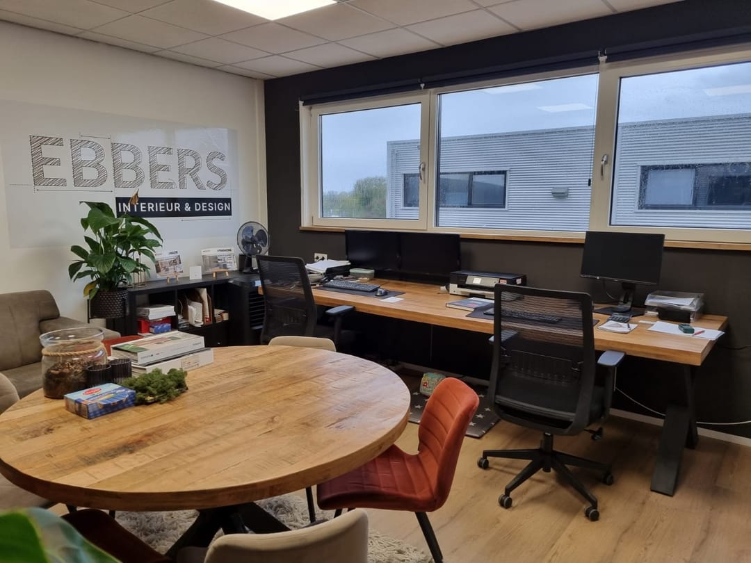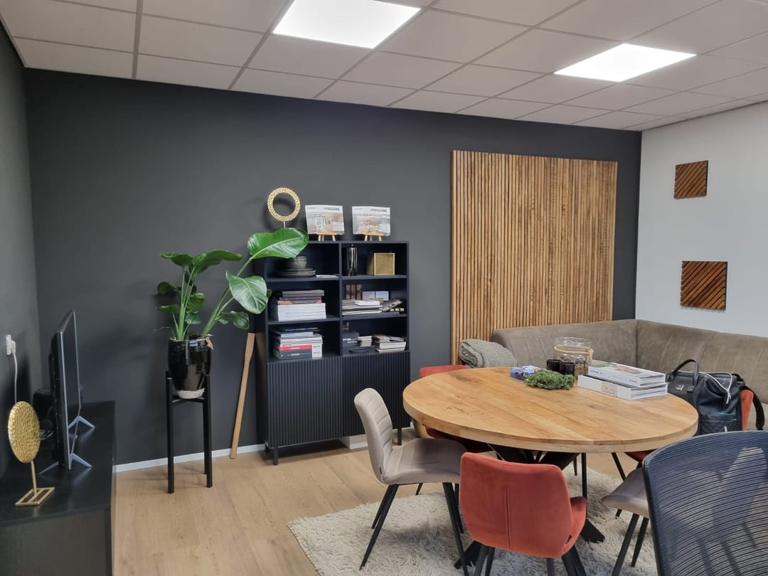Deze prachtige unit is niet alleen praktisch, maar ook bijzonder sfeervol ingericht. De entree, pantry en het kantoor hebben een huiselijke, warme uitstraling — ideaal om klanten en collega’s welkom te heten. Het kantoor en de pantry zijn voorzien van een pvc-vloer met houtlook. De wanden in moderne tinten zorgen voor een eigentijdse en warme uitstraling. Een mooi detail is de massief eikenhouten vensterbank, wat het geheel extra karakter geeft. Het resultaat is een gezellige en inspirerende werkomgeving waar je met plezier aan de slag gaat.