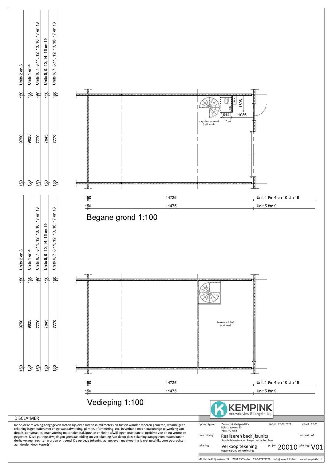 - Verwarming: vloerverwarming op de begane grond (voldoende diep om stellingen vast te zetten met bouten) en
