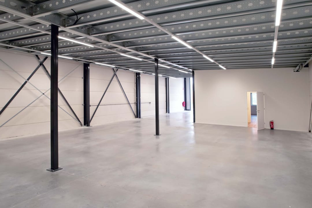 - Lichtstraten, overheaddeuren, krachtstroom, betonvloer, airconditioning, mechanische ventilatie, inbouwarmaturen en te openen ramen