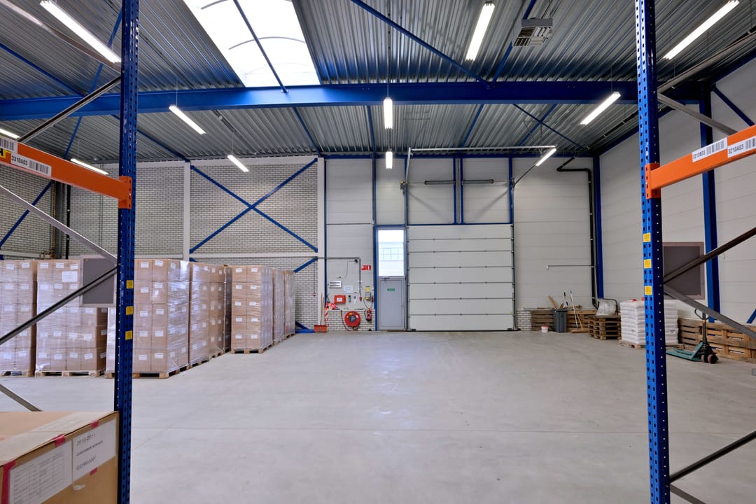 - Mechanische ventilatie, lichtstraten, overheaddeuren, krachtstroom, betonvloer, heater, toilet en pantry