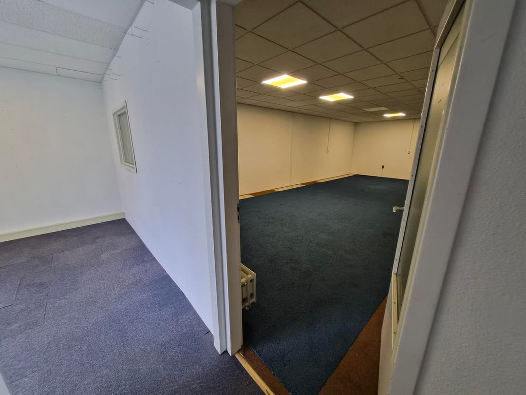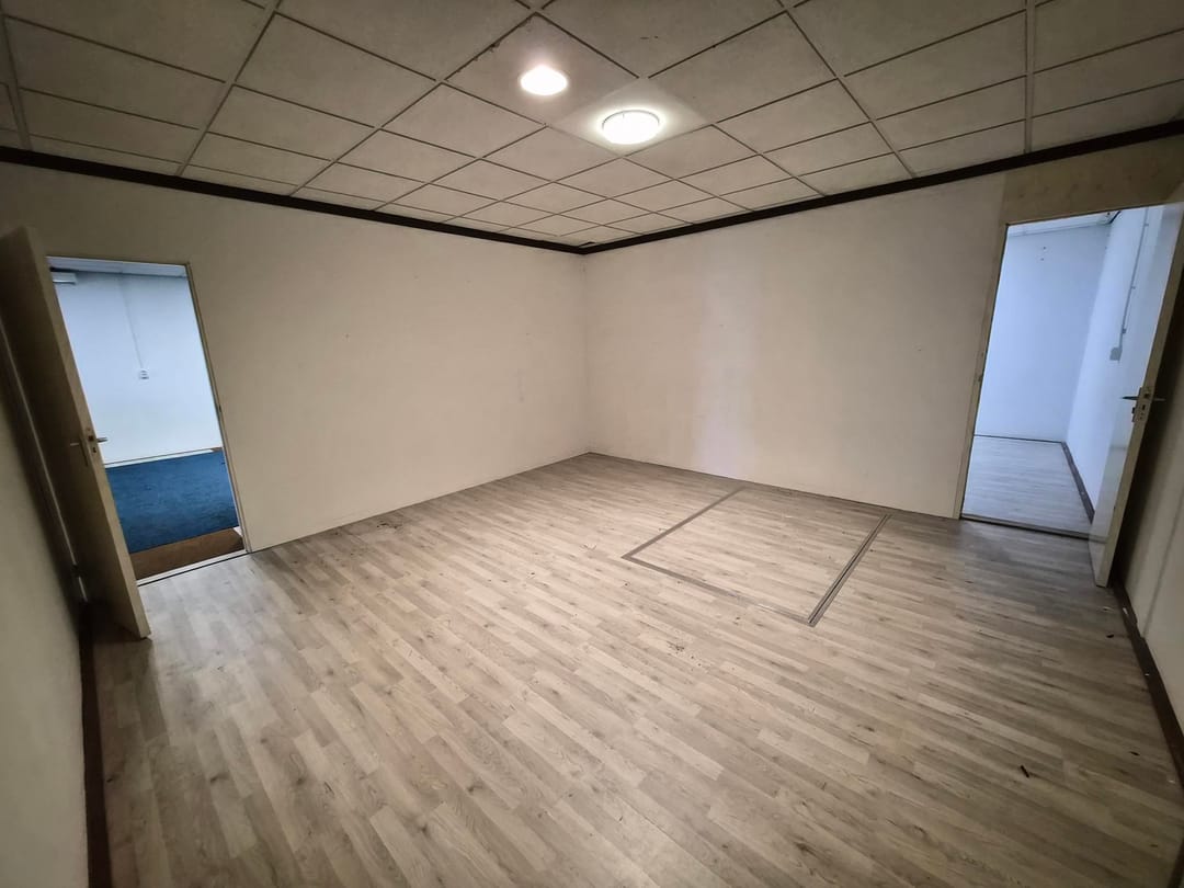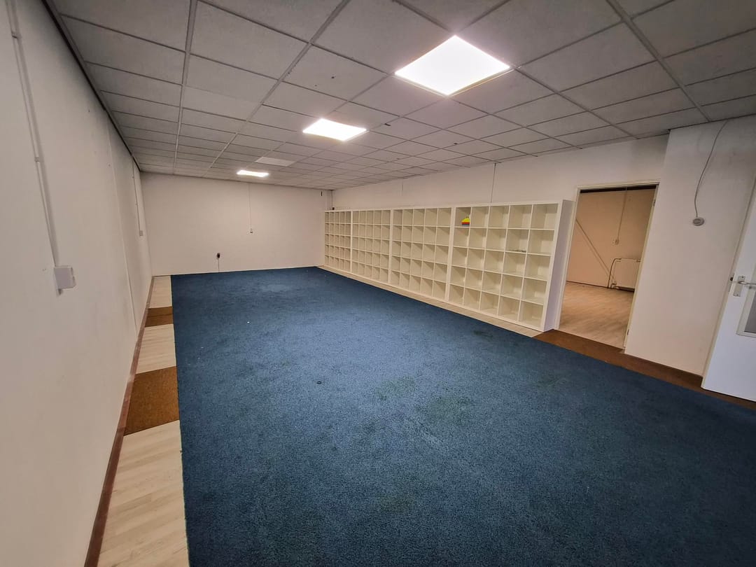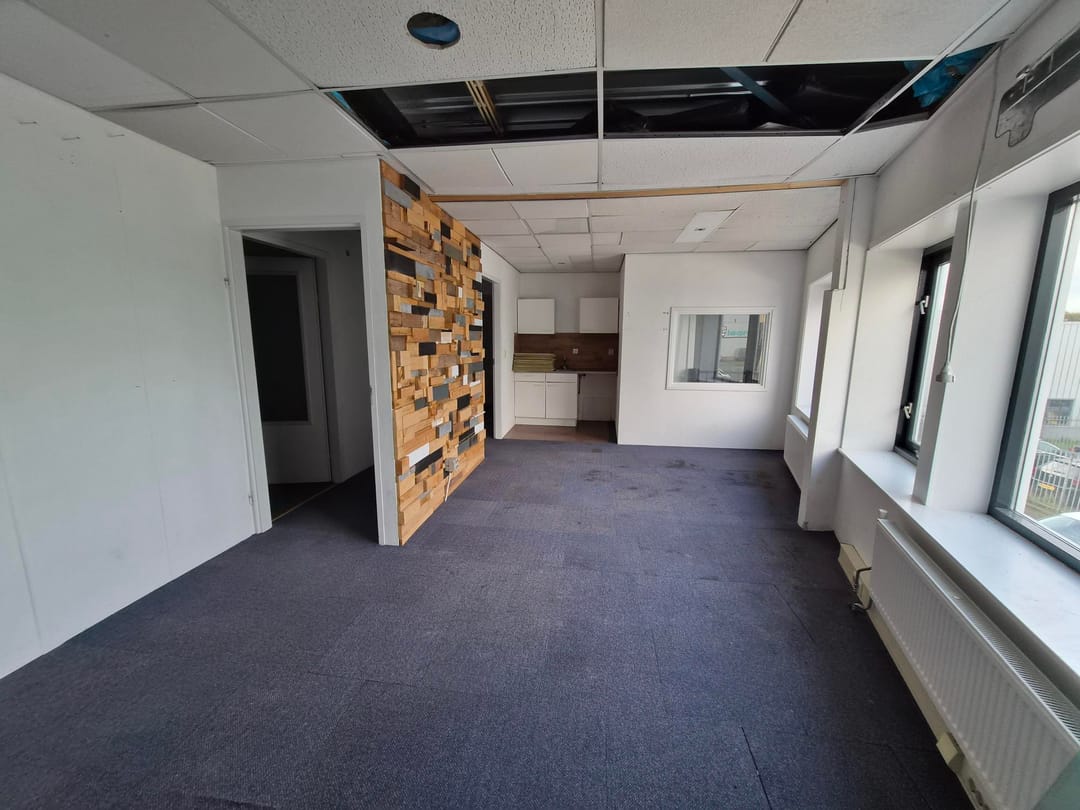 1e verdieping : overloop, kantine / kantoorruimte, toiletruimte doucheruimte en 2 afsluitbare vertrekken met kantoorpotentie. Oppervlakte circa 150 m² BVO.