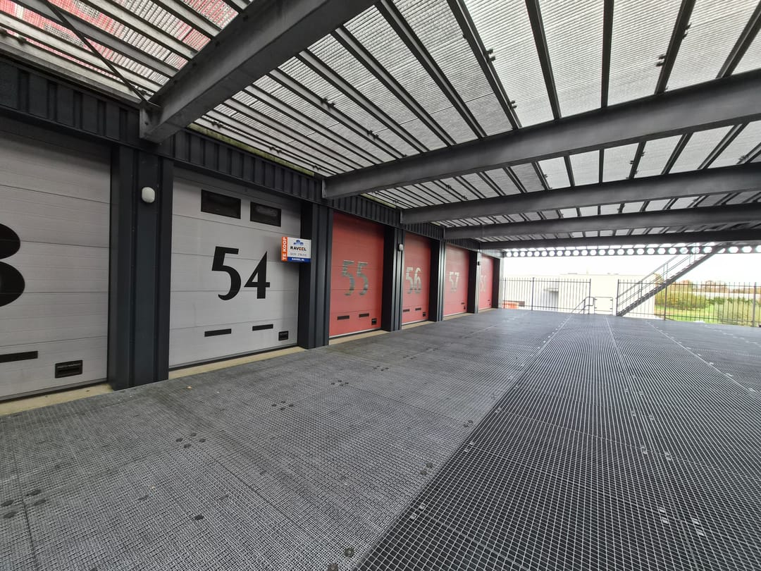 - Gemeenschappelijk terrein grotendeels omheind met een hekwerk. Het complex is voorzien van een hefplateau om de boxxen op de verdieping te bereiken.