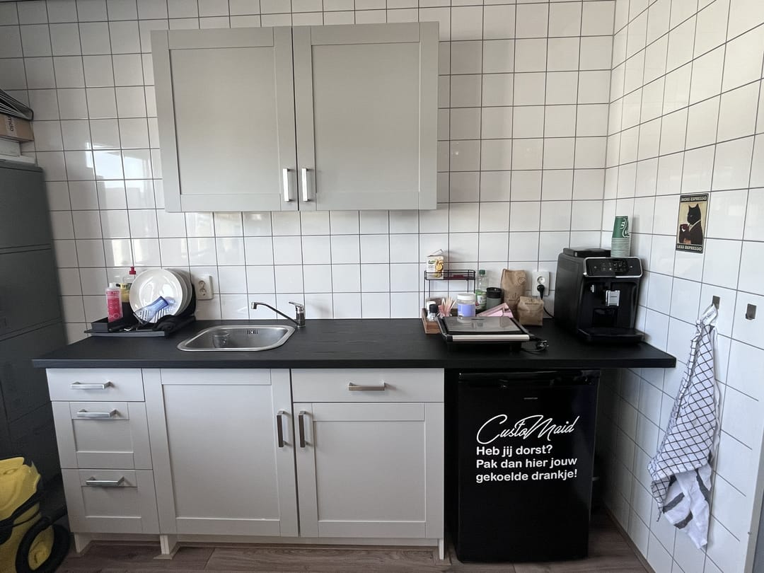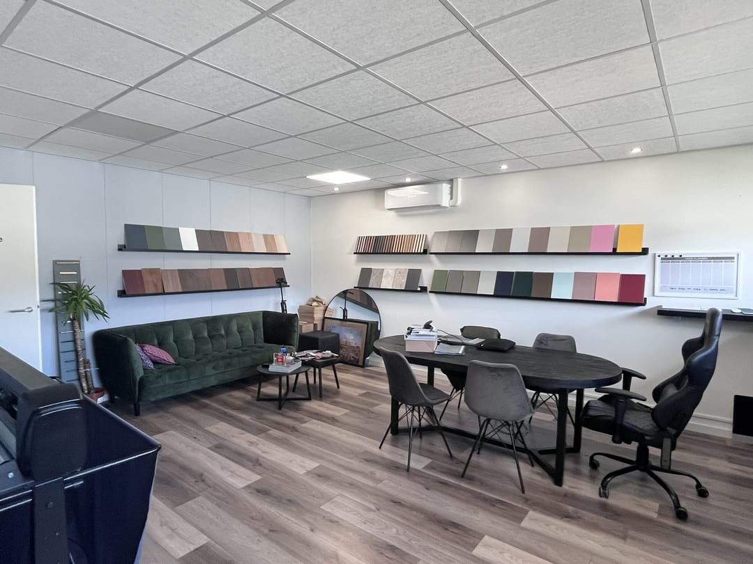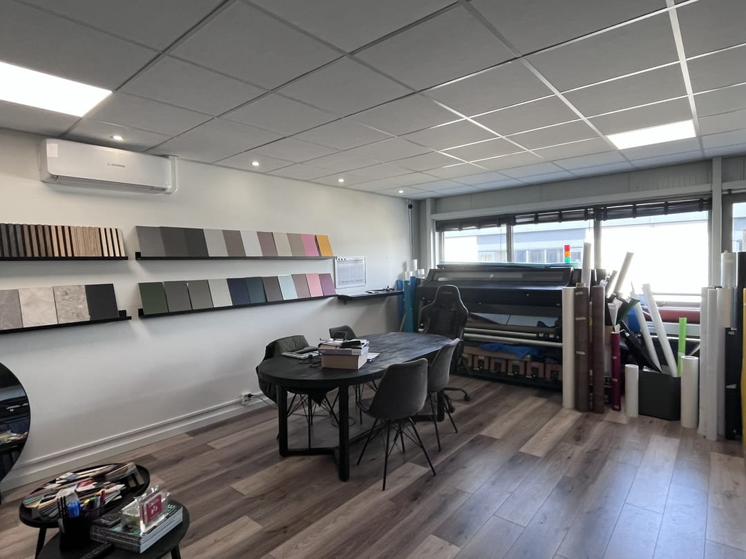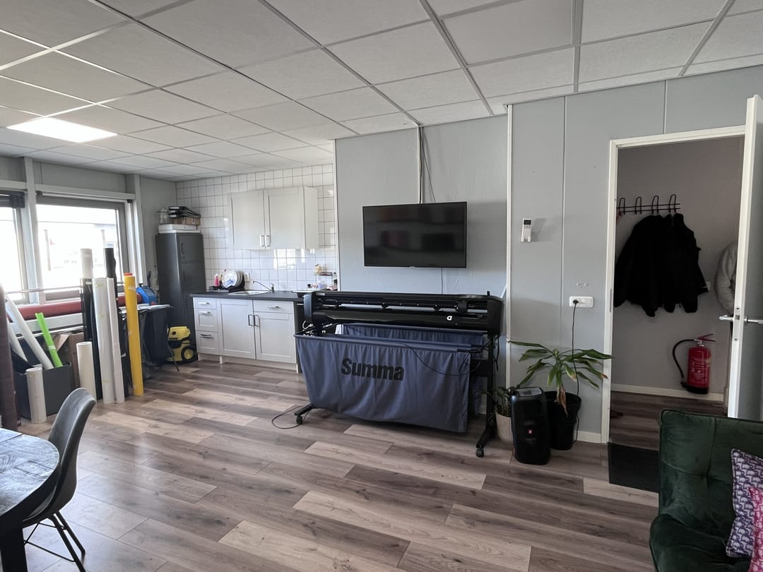 - kantoor op de verdieping is voorzien van systeemplafond, laminaat, pantry met warmwater boiler, toilet, airco en jaloezieën.
