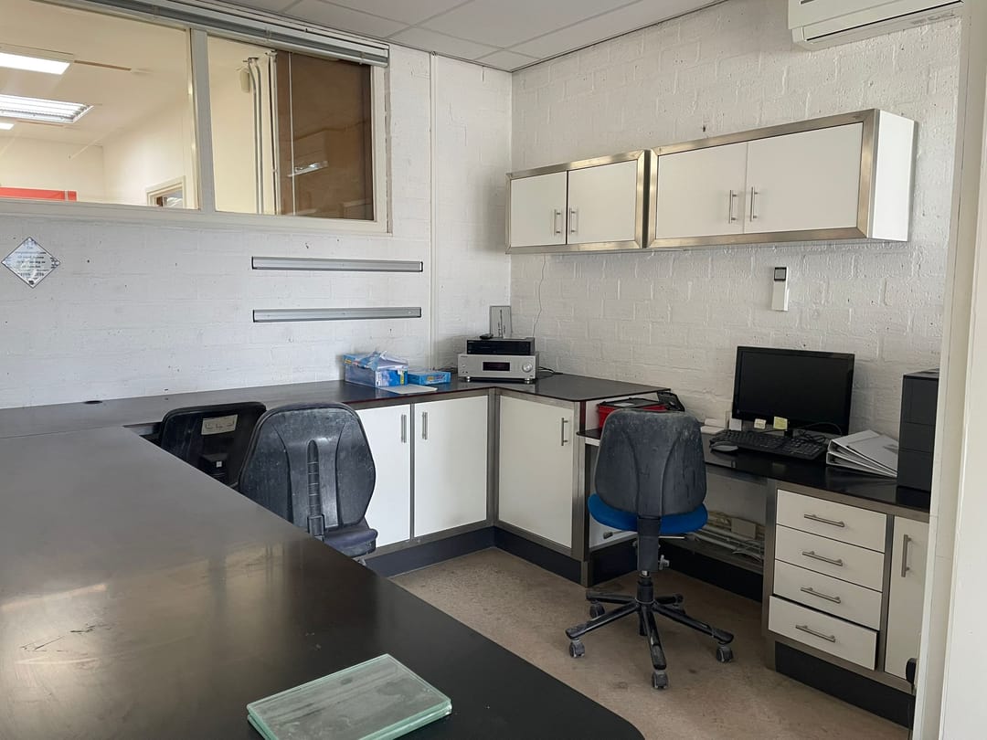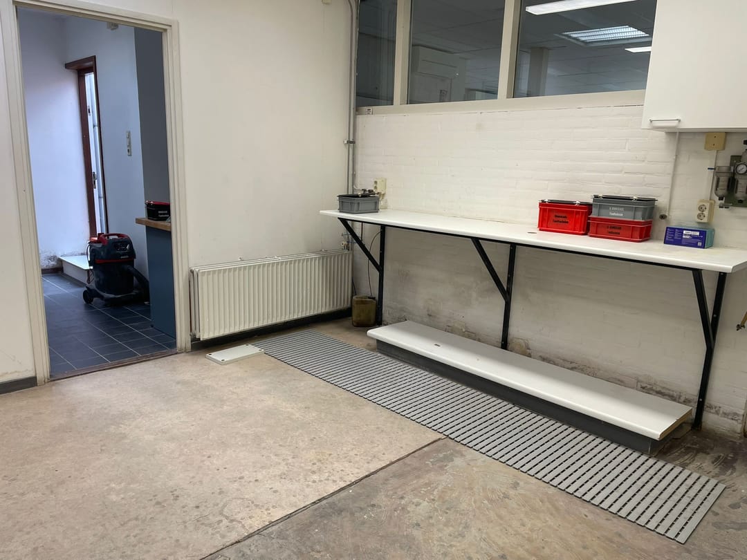 - Airconditioning, mechanische ventilatie, krachtstroom, betonvloer, toilet en pantry