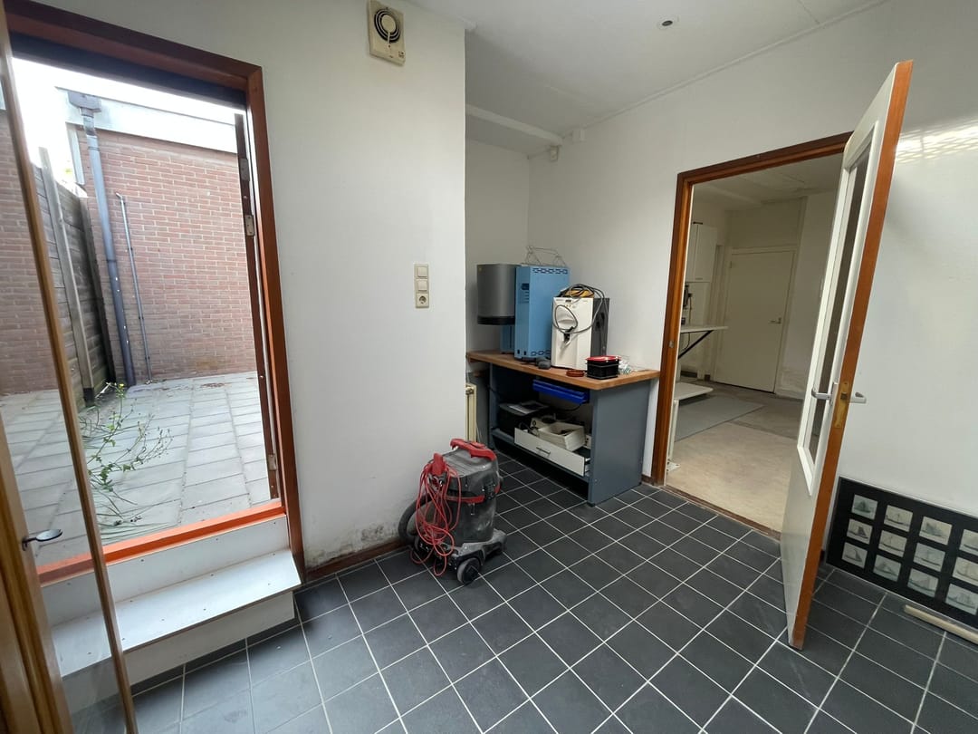 Deze bijzondere bedrijfsruimte leent zich voor diverse functies en meet ca. 115 m² v.v.o. en is geheel gelijkvloers op de gehele begane grond en beschikt over 2 eigen parkeerplaatsen en een patio.