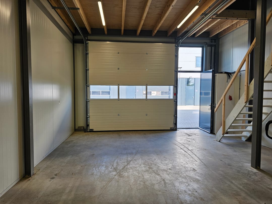 Deze multifunctionele bedrijfsunit heeft een oppervlakte van circa 96 m², verdeeld over de begane grond (met een maximale vloerbelasting van 1.000 kg/m²) en de eerste verdieping. De unit maakt deel uit van een representatief bedrijfsverzamelgebouw en is voorzien van een elektrische, geïsoleerde overheaddeur met een doorrijhoogte van circa 3.500 mm (b) x 3.500 mm (h).
