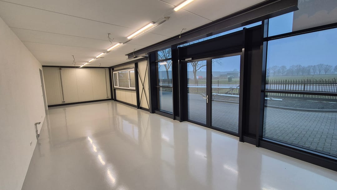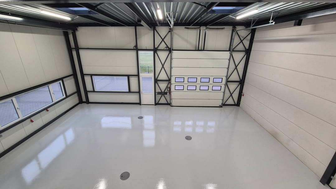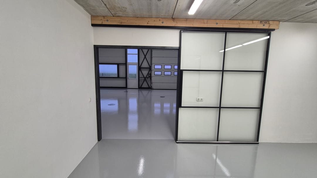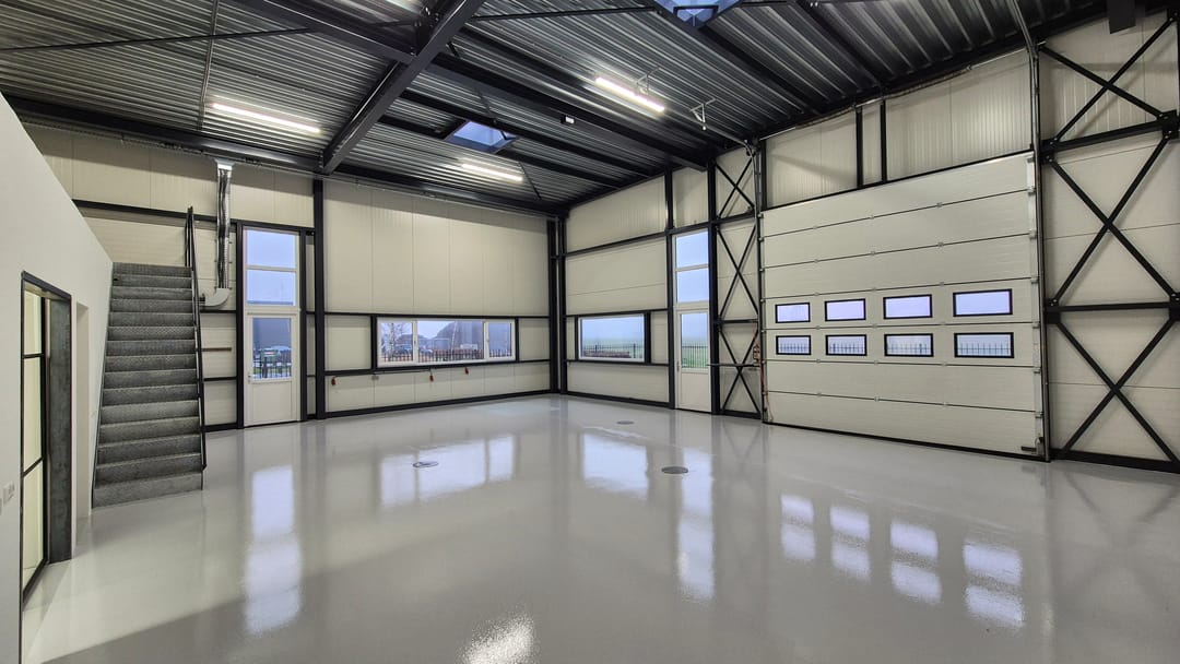 - Lichtstraten, overheaddeuren, krachtstroom, betonvloer, toilet en pantry