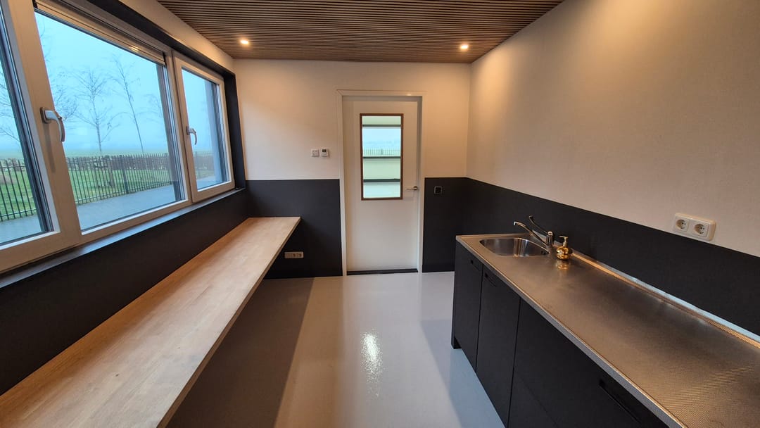 - Vloeistofdichte betonvloeren met coating en vloerverwarming;