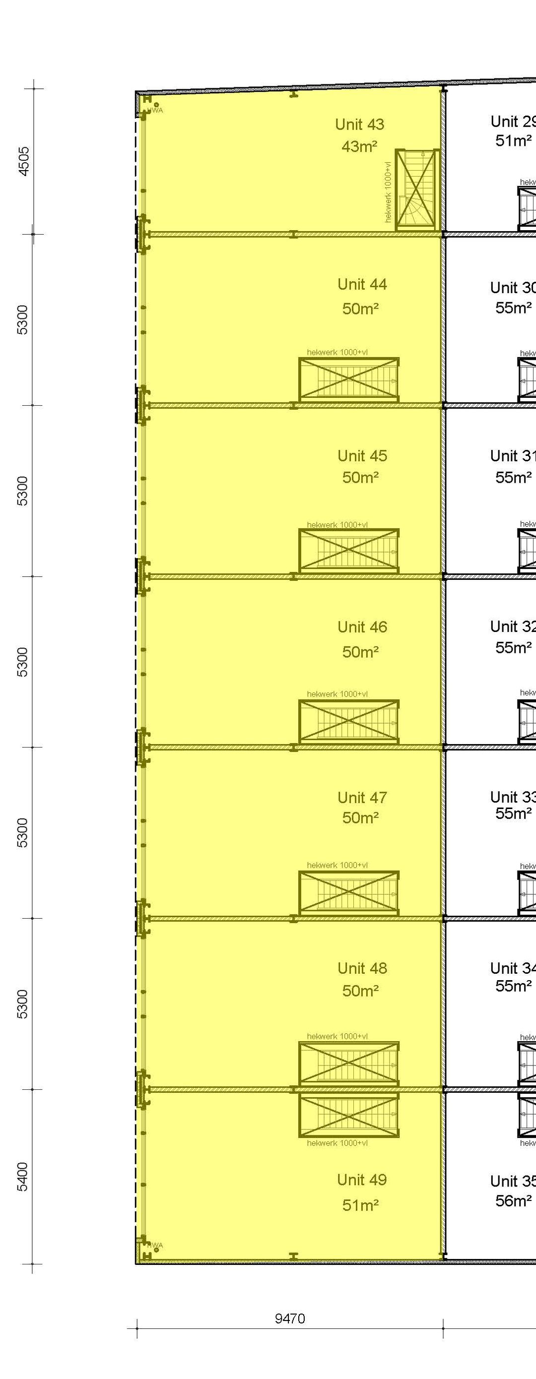 De aangeboden units worden opgeleverd met een functionele bedrijfsruimte op de begane grond met een vrije hoogte van maar liefst 4,70 meter en een afgewerkte betonnen verdiepingsvloer. De verdieping is geschikt om eventueel als kantoor af te bouwen en beschikt door de schuine kapconstructie met grote raampuien over veel daglichttoetreding.