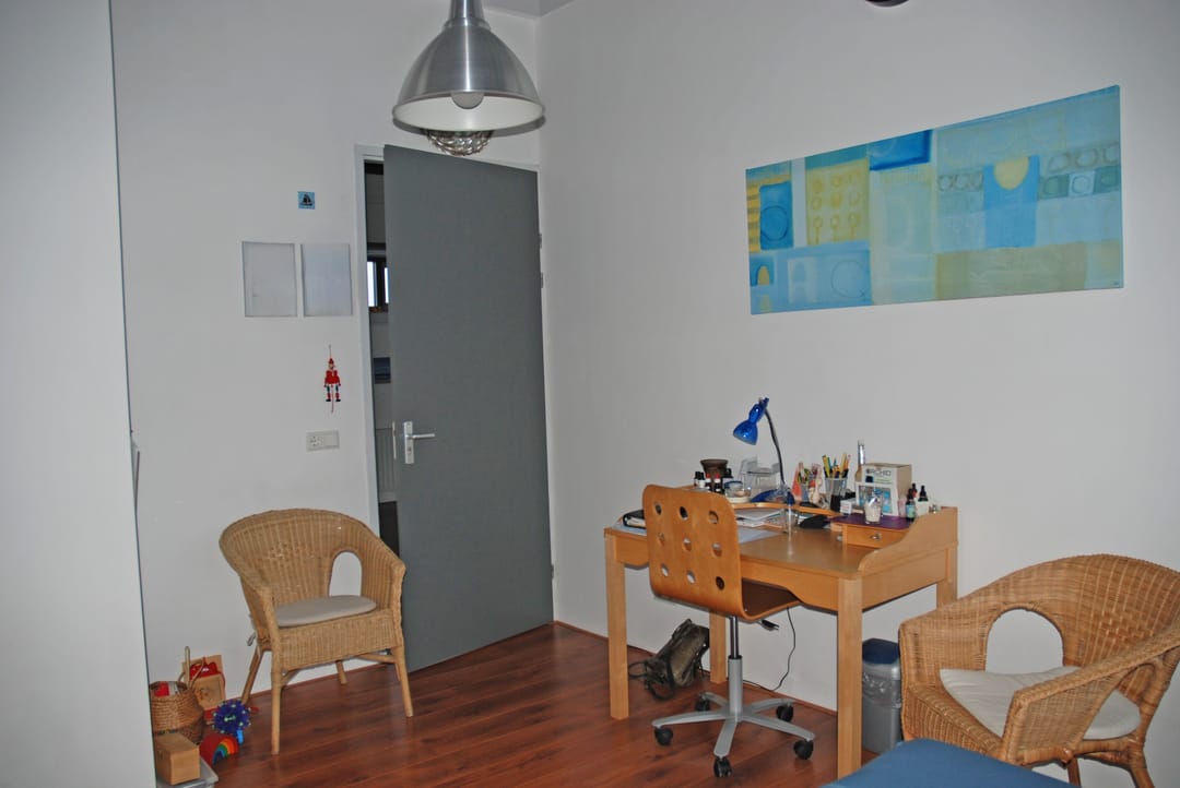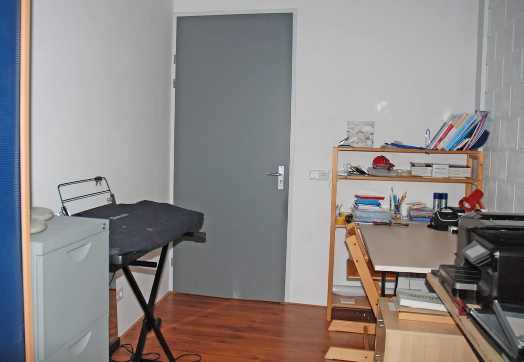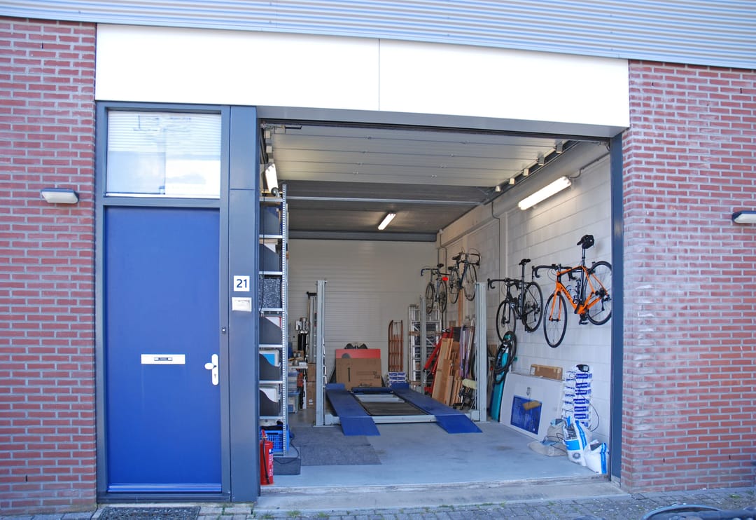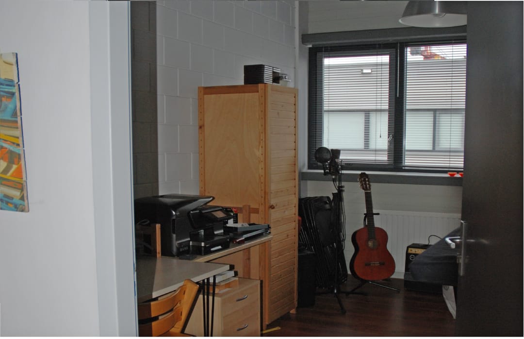 De verdieping is ingericht als kantoorruimte en biedt daarmee een prettige combinatie van werken en opslag onder één dak.
