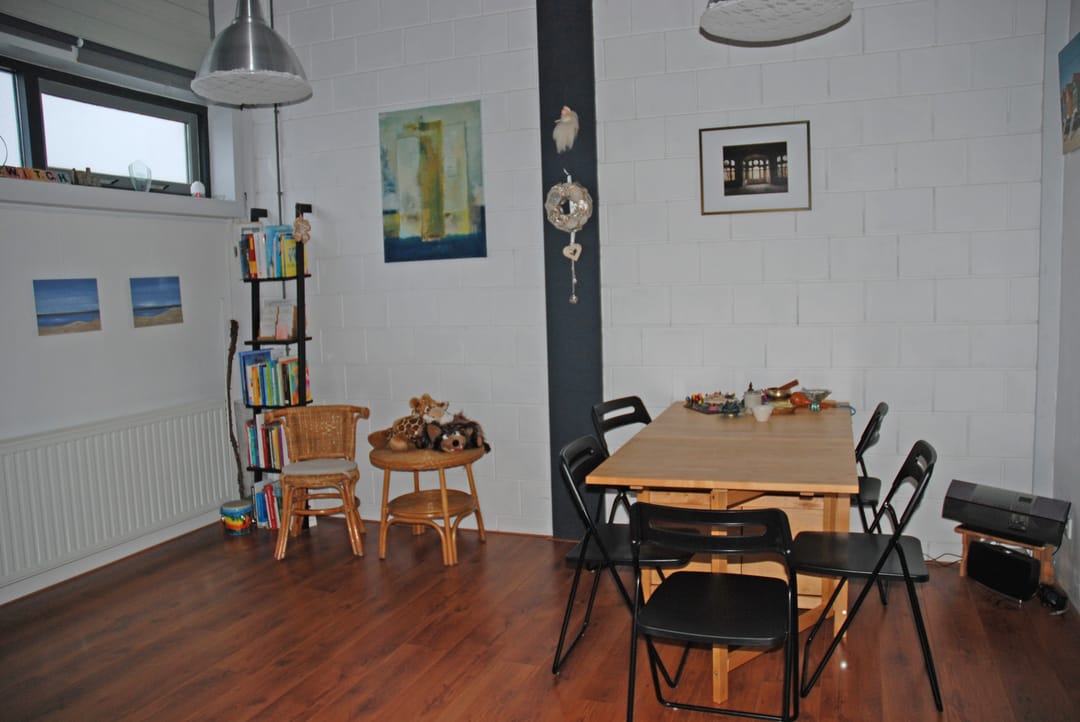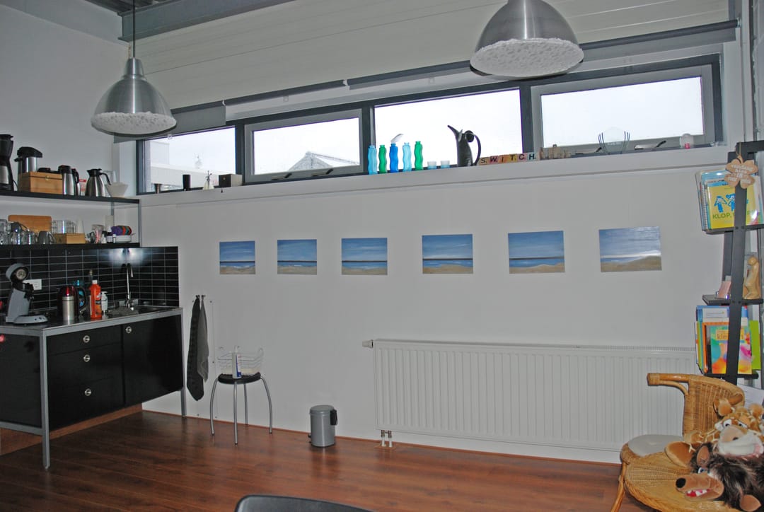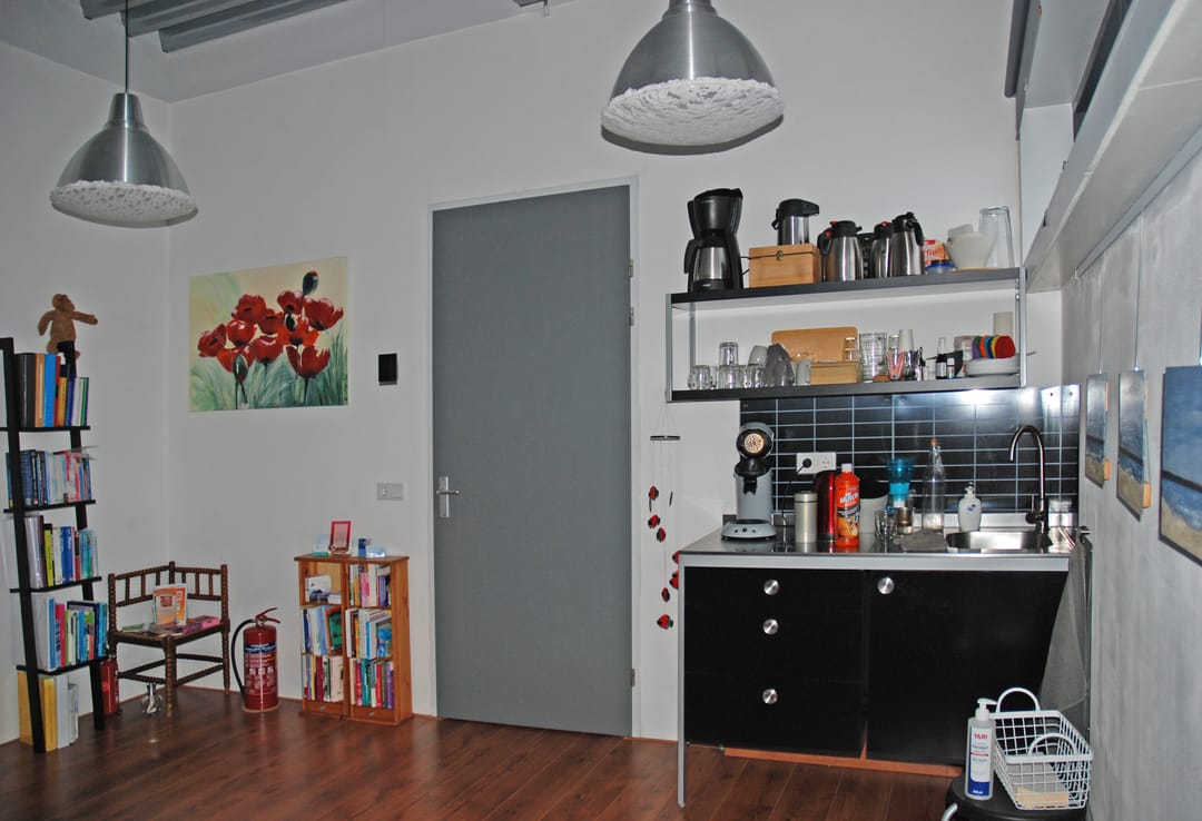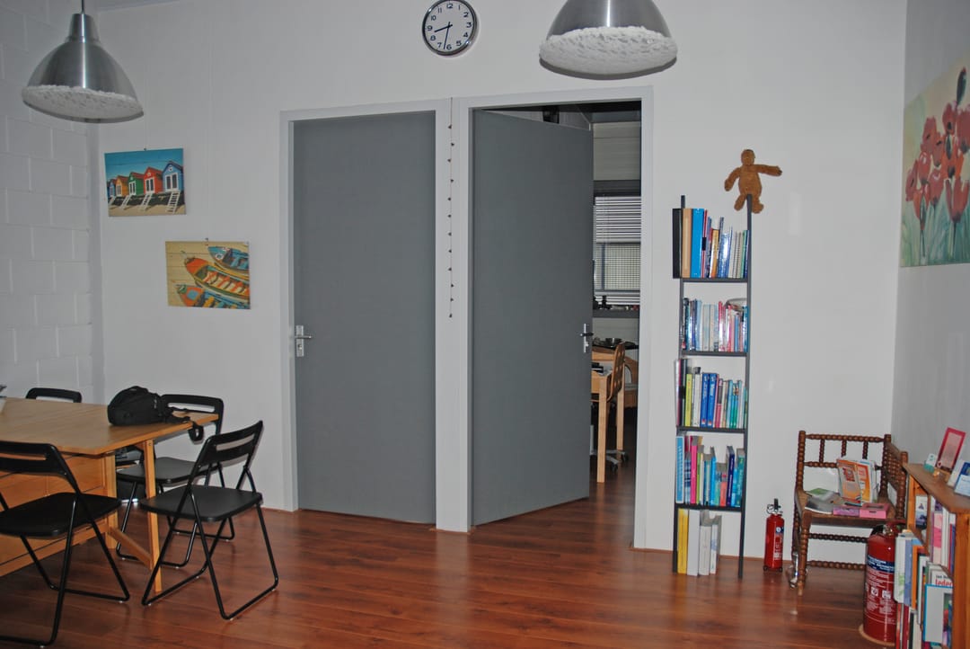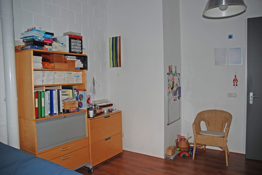 De verdieping is ingericht als kantoorruimte en biedt daarmee een prettige combinatie van werken en opslag onder één dak.