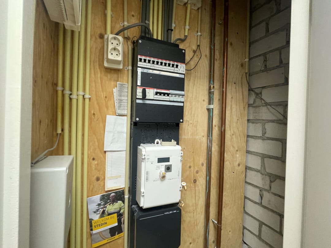 - meterkast met aansluitingen voor water, gas, elektra en internet;