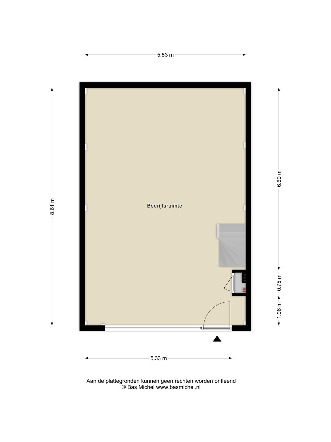 De bedrijfs-/opslagruimte voorzien van een glad afgewerkte betonvloer.