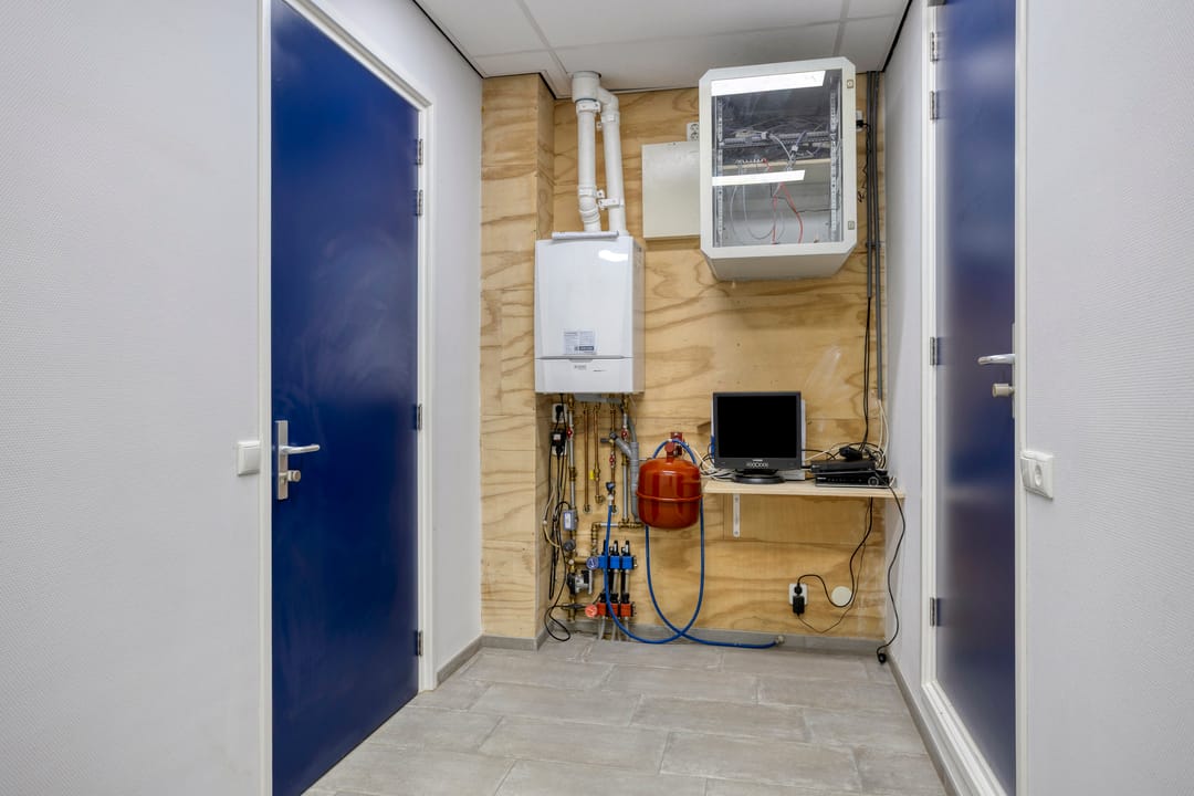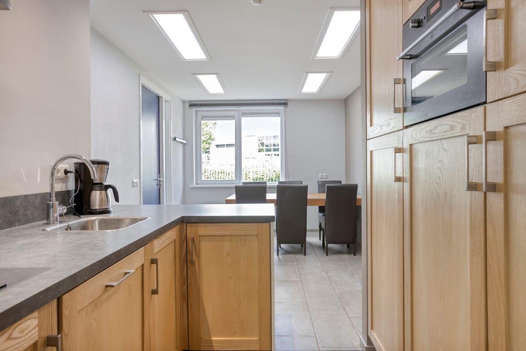 - pantry/ kantine, voorzien van inbouwkeuken met oa afwasmachine, koelkast, keramische kookplaat en oven/magnetron.