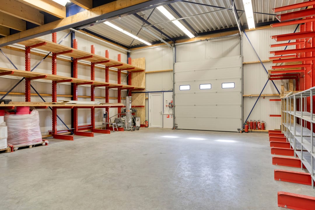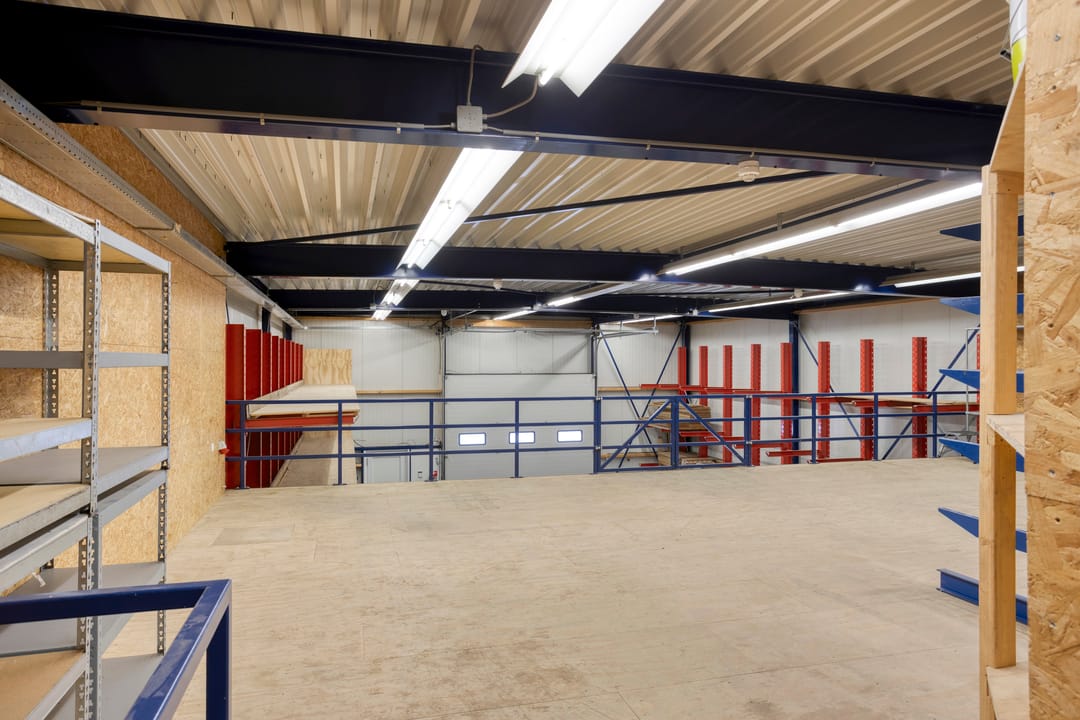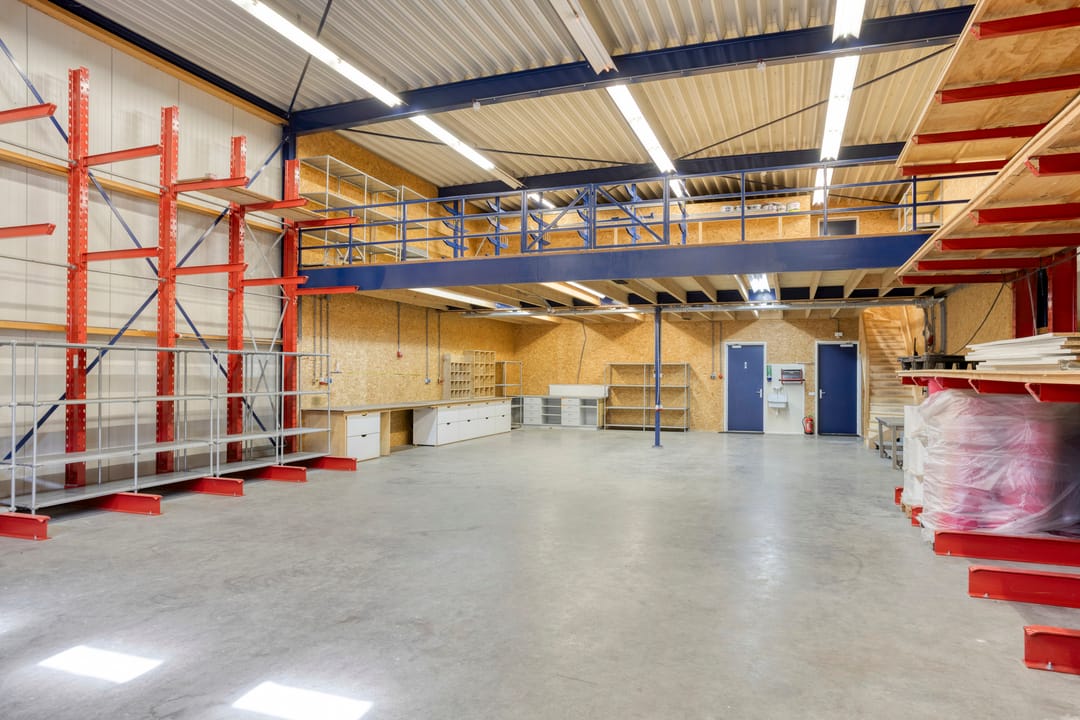 Achter de kantoorruimte is de bedrijfsruimte, voorzien van entresolvloer, met werkplaats gesitueerd.