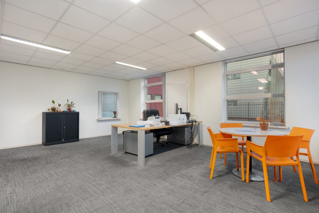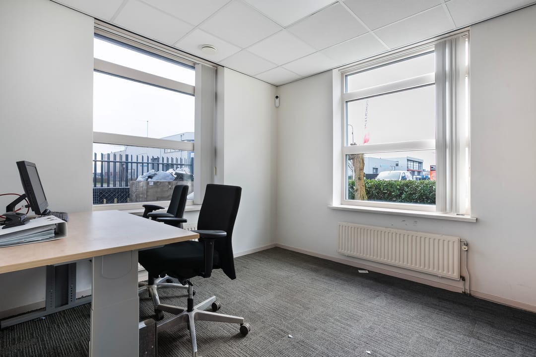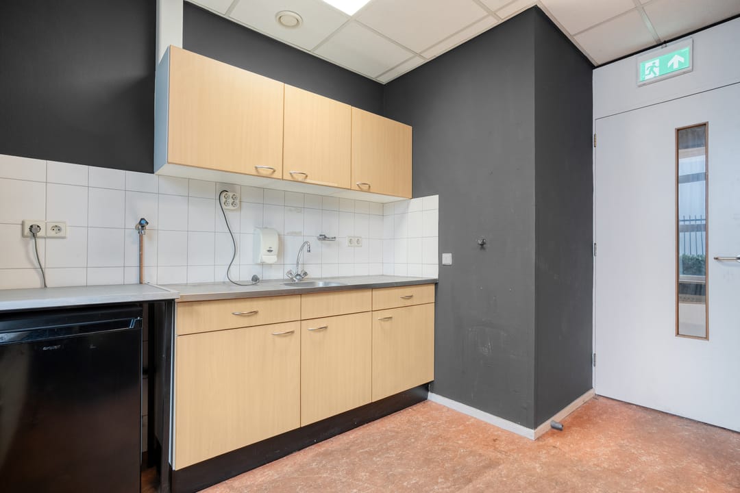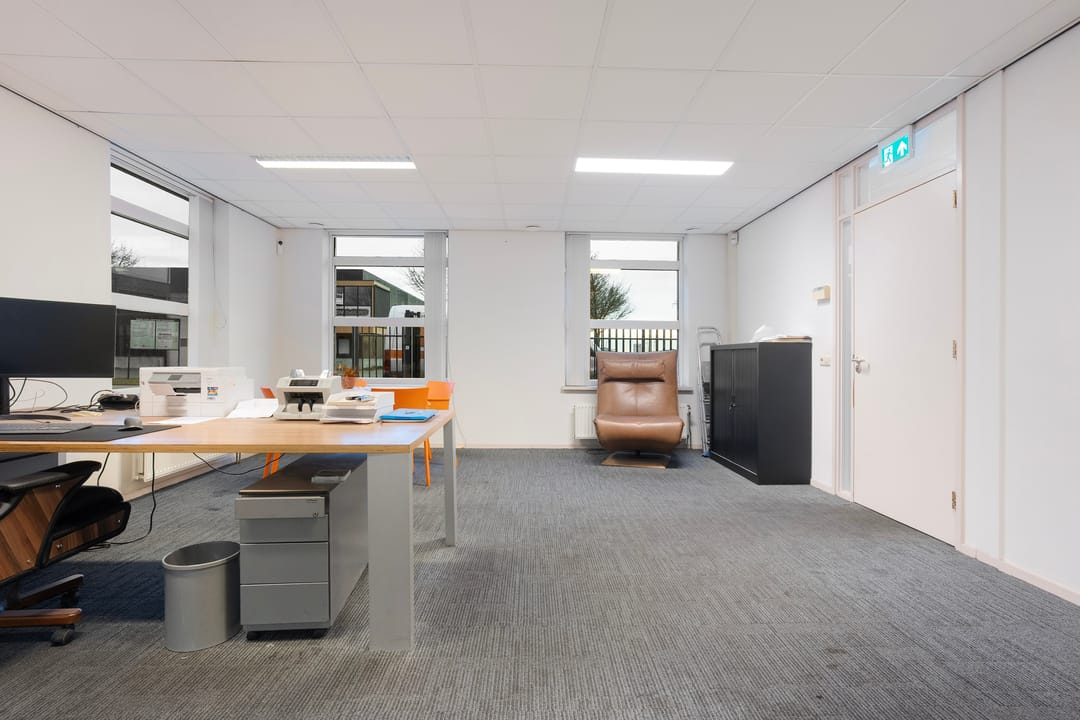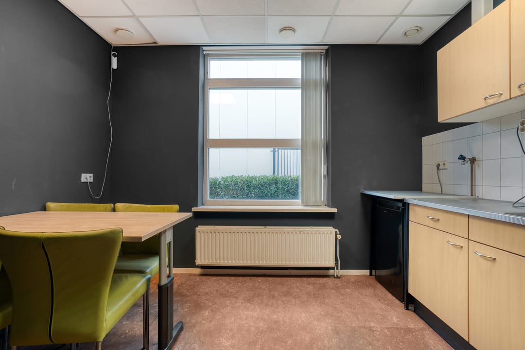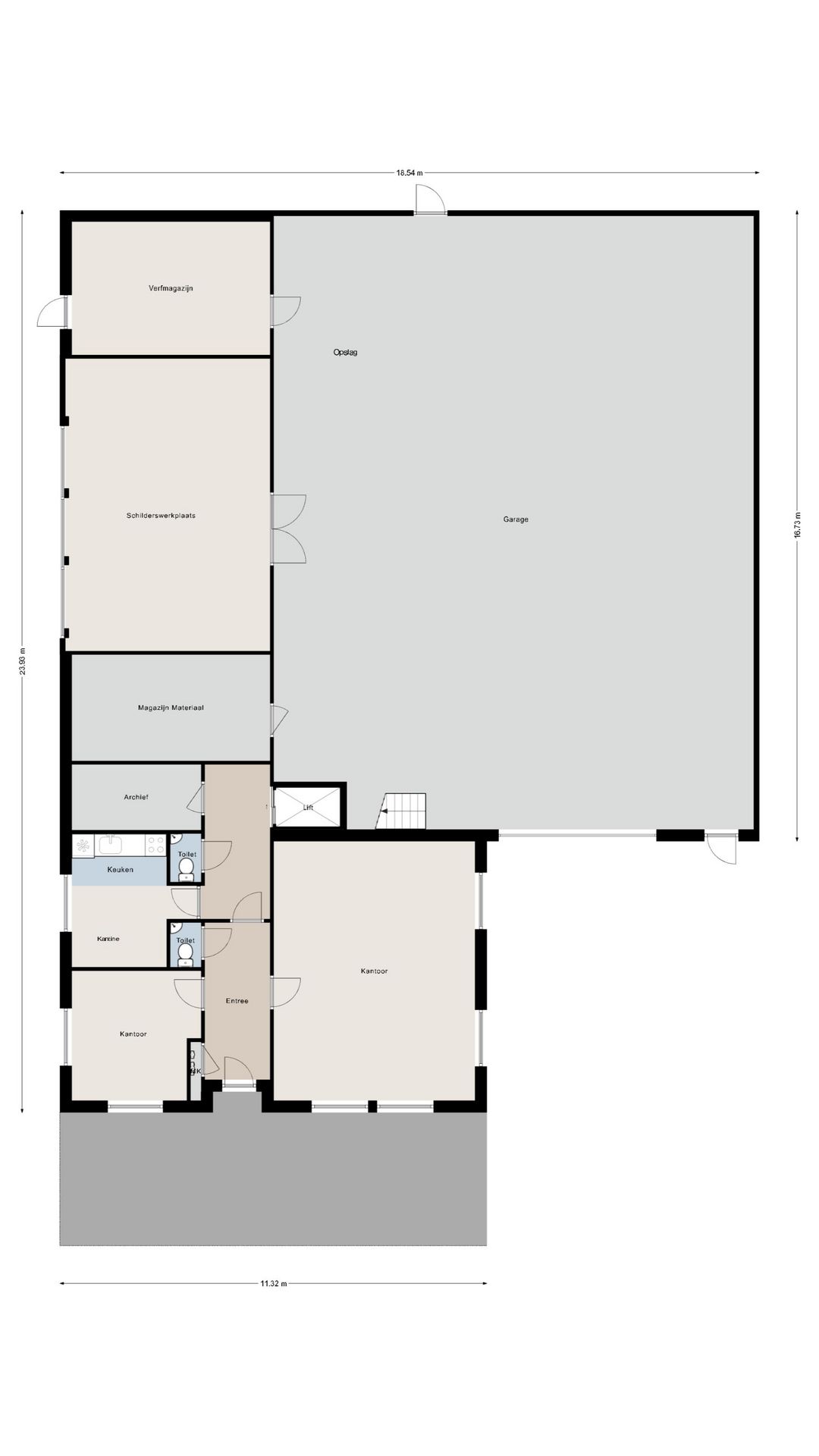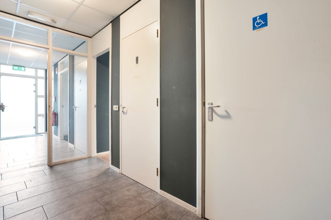 Entree/ontvangsthal, meterkast, kantoor 1 (ca. 13 m²), kantoor 2 (ca. 39 m²), kantine, toilet (d+h), invalide toilet + werkkast (voorheen archief)