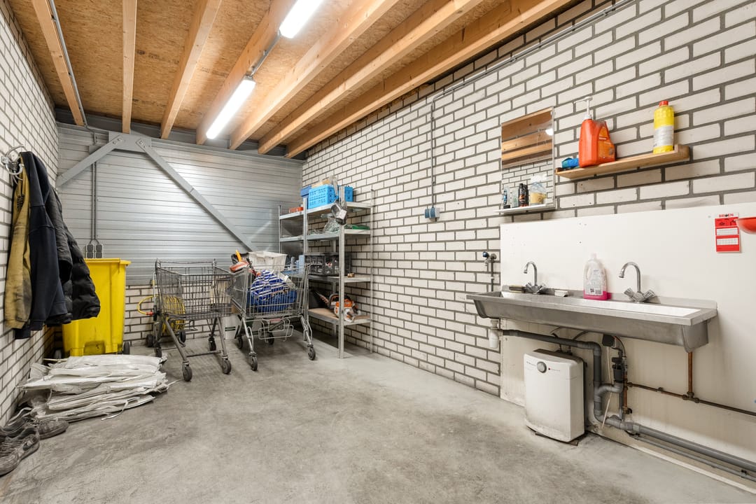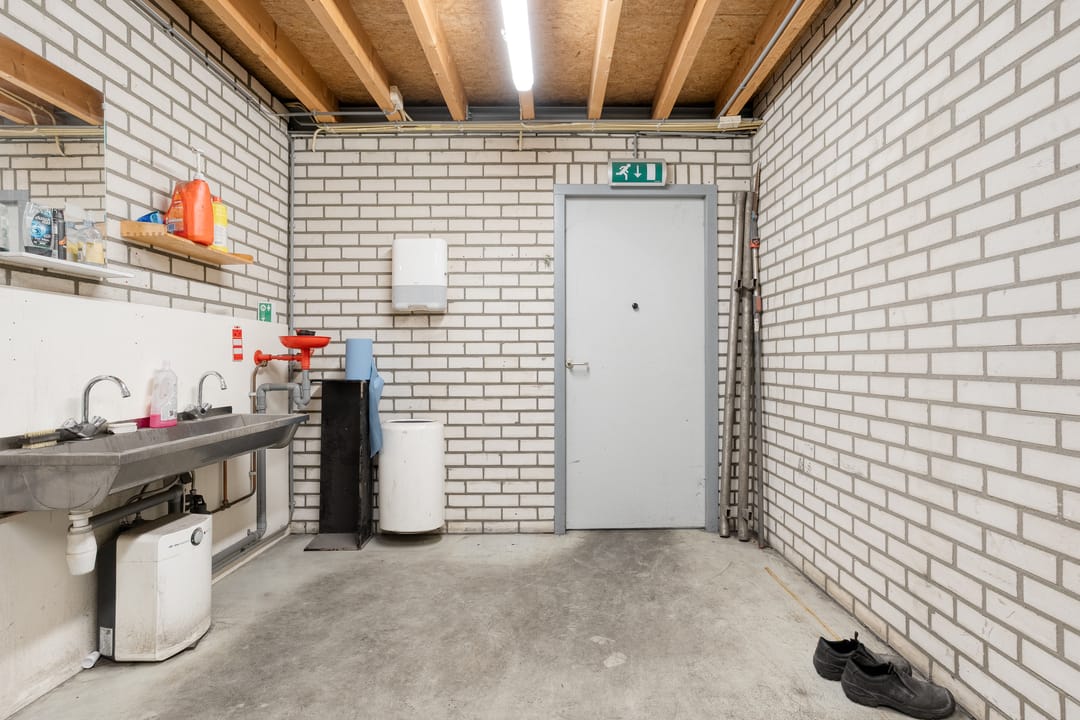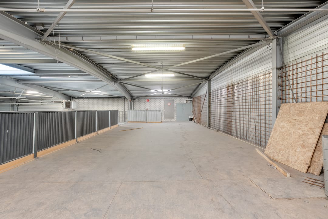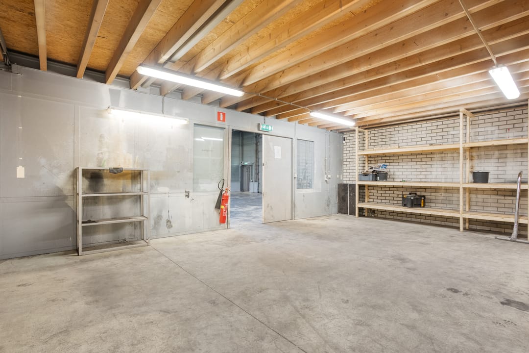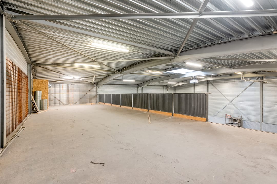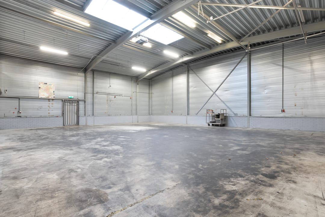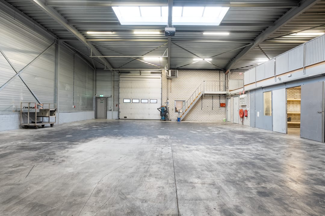 Bedrijfshal v.v. overheaddeur, daglichtstraat, werkplaats en magazijn.