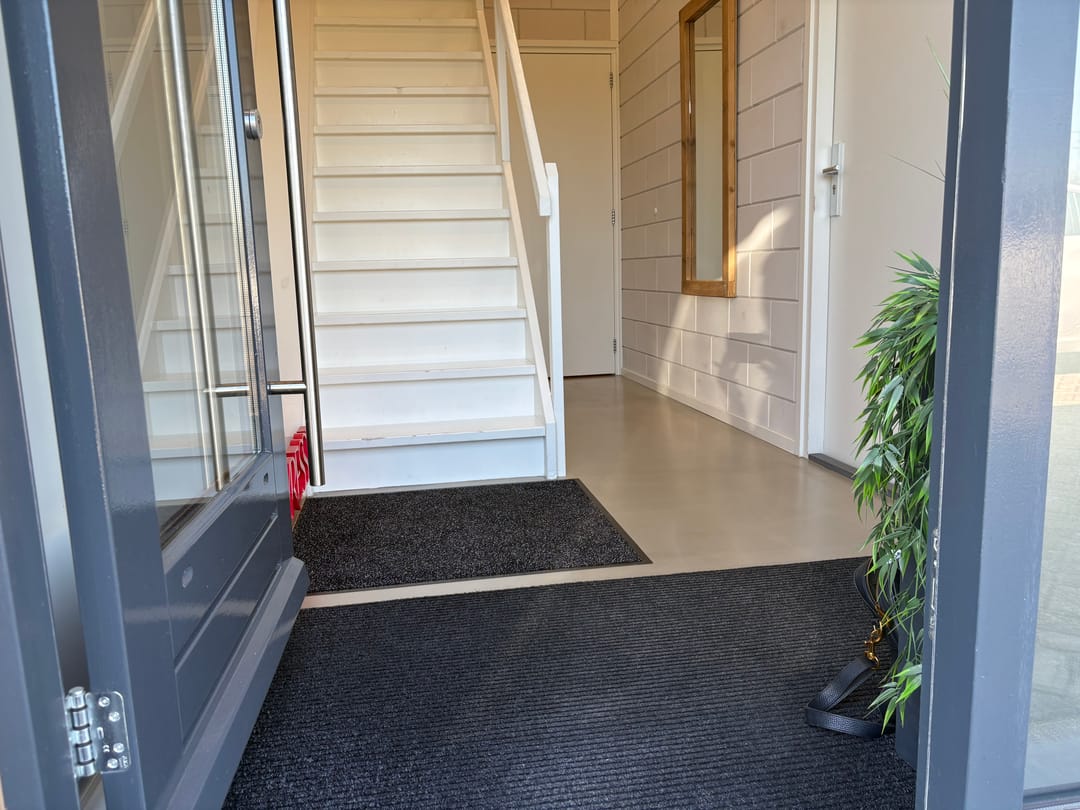 Via een separate entree, voorzien van een toilet en afgesloten bergruimte, bereikt u de afgesloten kantoorruimte op de eerste verdieping. De kantoorruimte beschikt over een 4-tal ramen en heeft een uniek, weids uitzicht over het Almelose Kanaal. Een strakke gietvloer, pantry, shutters maken het een moderne en representatieve kantoorruimte. De twee extra geplaatste ramen, geïsoleerde wand, airconditioning unit en vloerverwarming zorgen voor een zeer fijn werkklimaat.