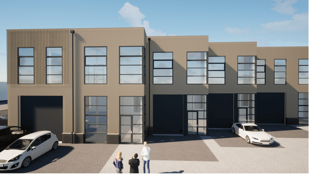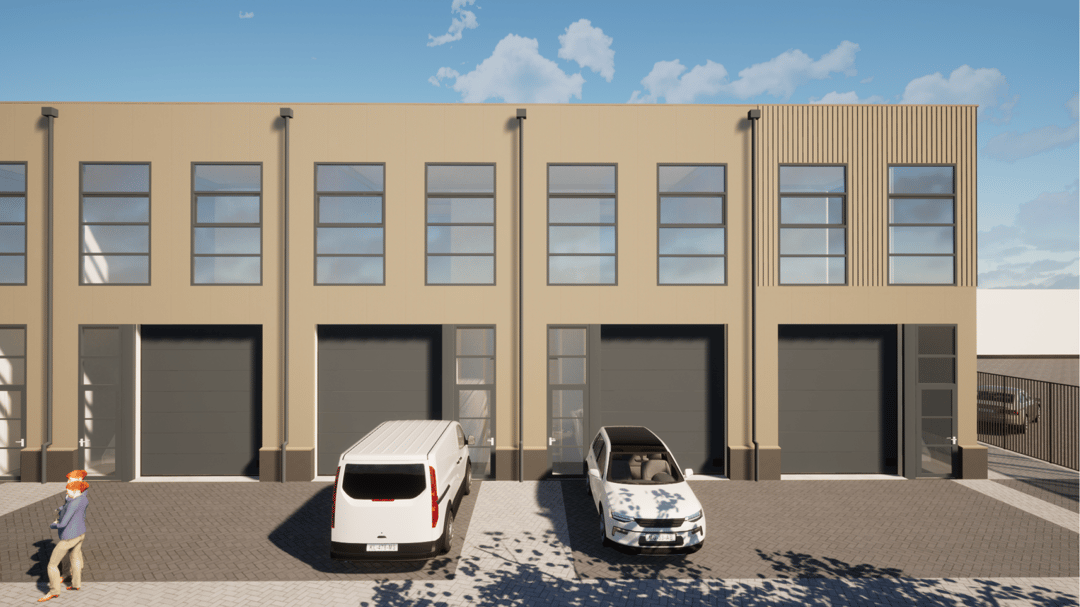 Elke bedrijfsunit beschikt over een drietal eigen parkeerplaatsen.
