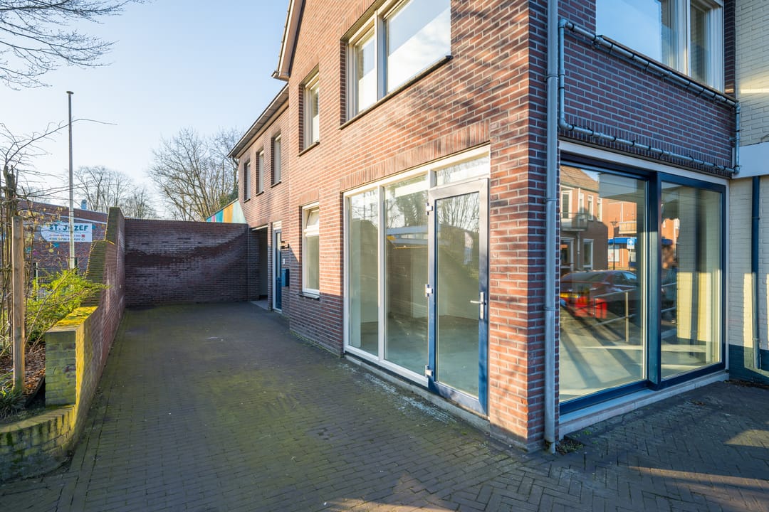 Begane grond: winkelruimte met schuifdeur, rolstoelvriendelijke entree, bedrijfsruimte/magazijn, royale achtertuin.