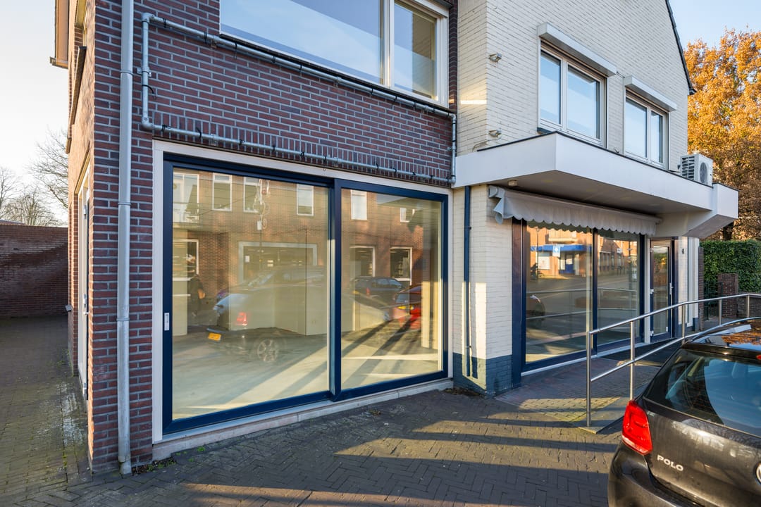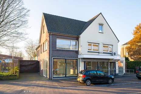 Te Koop op een mooie zichtlocatie in het centrum van Aalten gelegen WINKELRUIMTE MET BOVENWONING met veel mogelijkheden en een tuin aan de achterzijde.