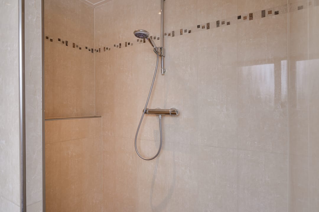 Vier slaapkamers en een grote badkamer voorzien van ligbad, douche, dubbele wastafel en toilet.