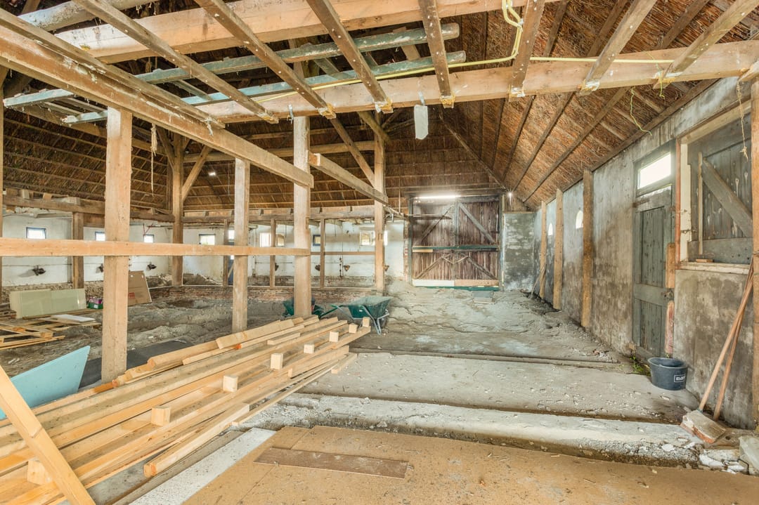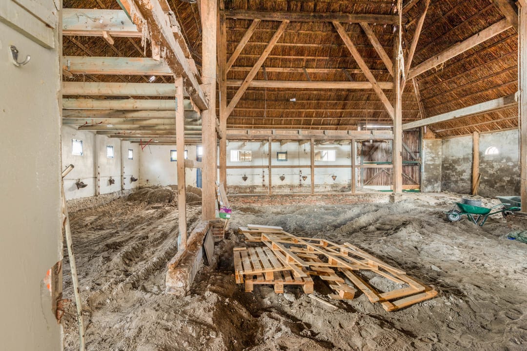 De boerderij is een gemeentelijk monument, maar vraagt om een volledige transformatie. Het casco is ruim, helder en uitnodigend: precies wat een serieuze ontwikkelaar graag ziet. Met vergunningsaanvraag in behandeling en volledige tekenpakketten klaarliggen, kun je snel schakelen zodra de formele goedkeuring binnenkomt. Of je nu vier appartementen wil realiseren of het geheel wil omtoveren tot één spectaculaire woonboerderij: de basis is er, de potentie immens.