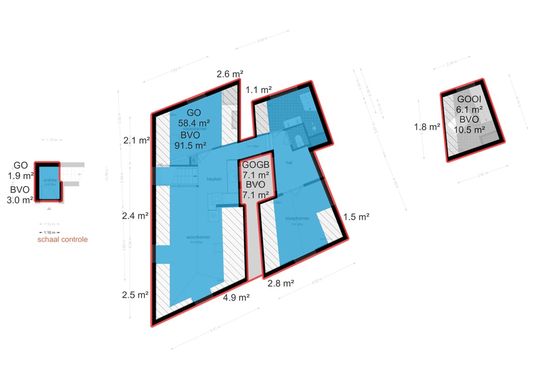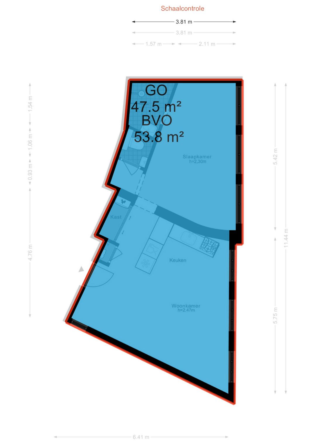 Woning 1 – Spuistraat 257-A: circa 48 m² g.b.o., 1e verdieping