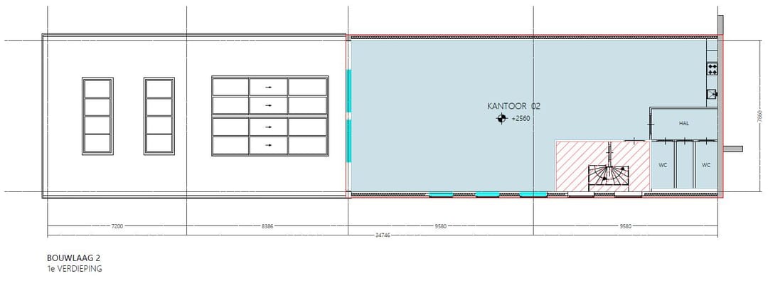 Ca. 537 m² v.v.o. kantoorruimte gelegen op de begane grond, eerste verdieping en tweede verdieping.