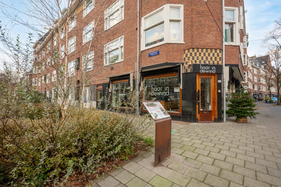 Dit pand bestaat uit eveneens vijf bouwlagen, namelijk de winkel (kapsalon) op de begane grond en drie woningen op de