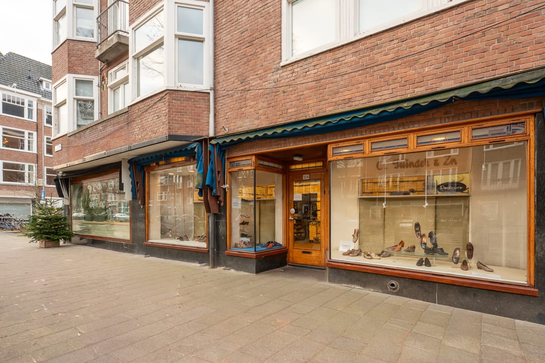Dit pand bestaat uit vijf bouwlagen, namelijk de winkel (schoenenwinkel) op de begane grond en drie woningen op de