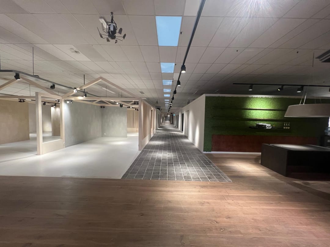 Bebouwde oppervlakte: ca. 1.800 m² (showroom + kantoor/opslag)