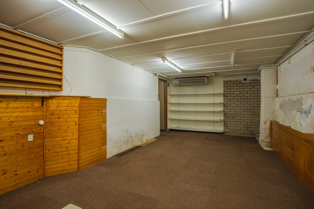 De winkelruimte op de begane grond beschikt over een groot en bruikbaar souterrain, ideaal voor opslag of uitbreiding van de commerciële functie.