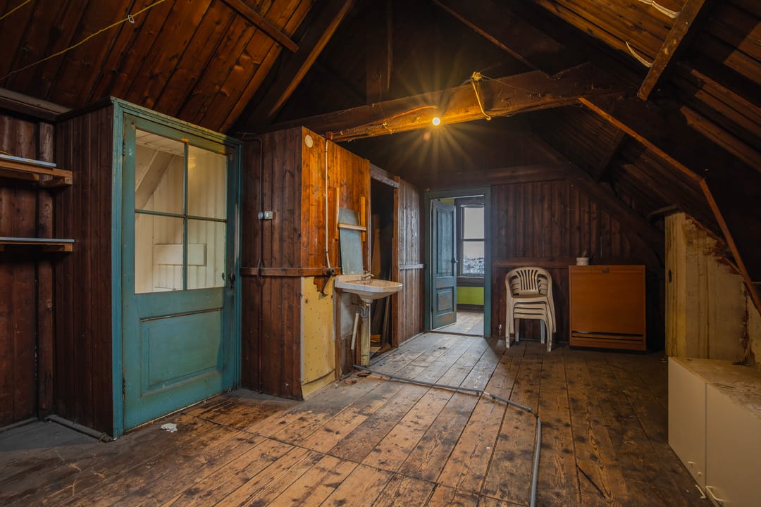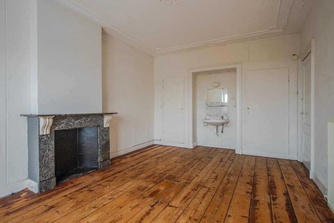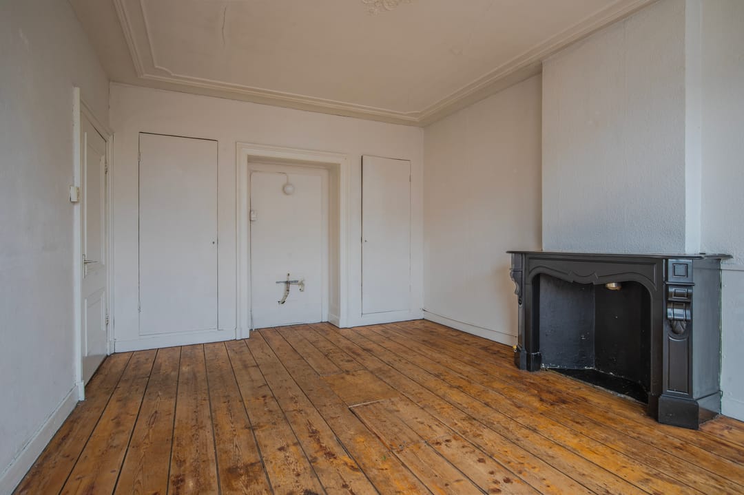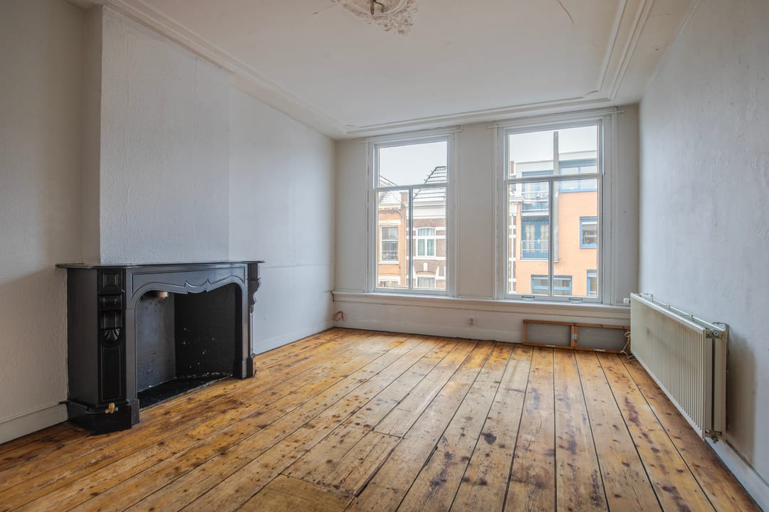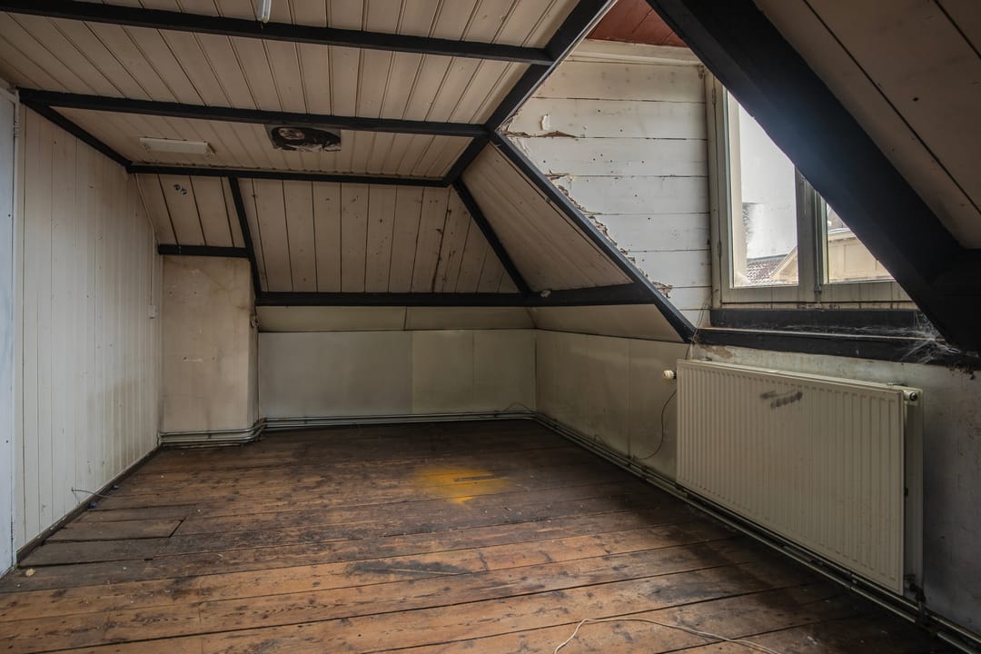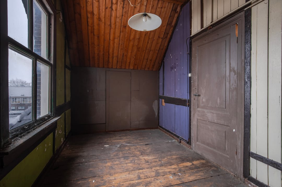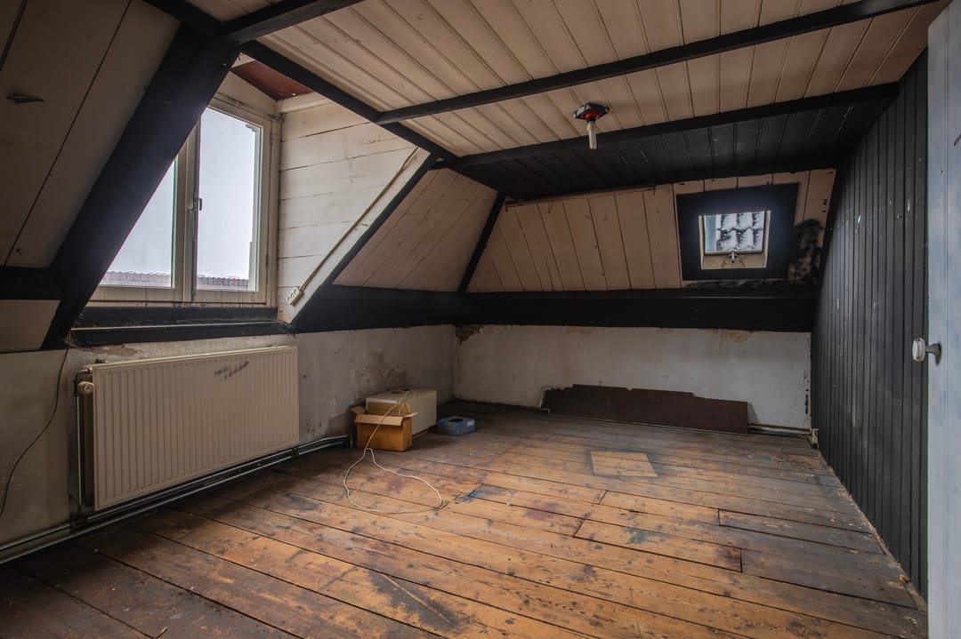 De woning op de eerste verdieping is verhuurd. De tweede en de zolder verdieping betreft een te renoveren woning.