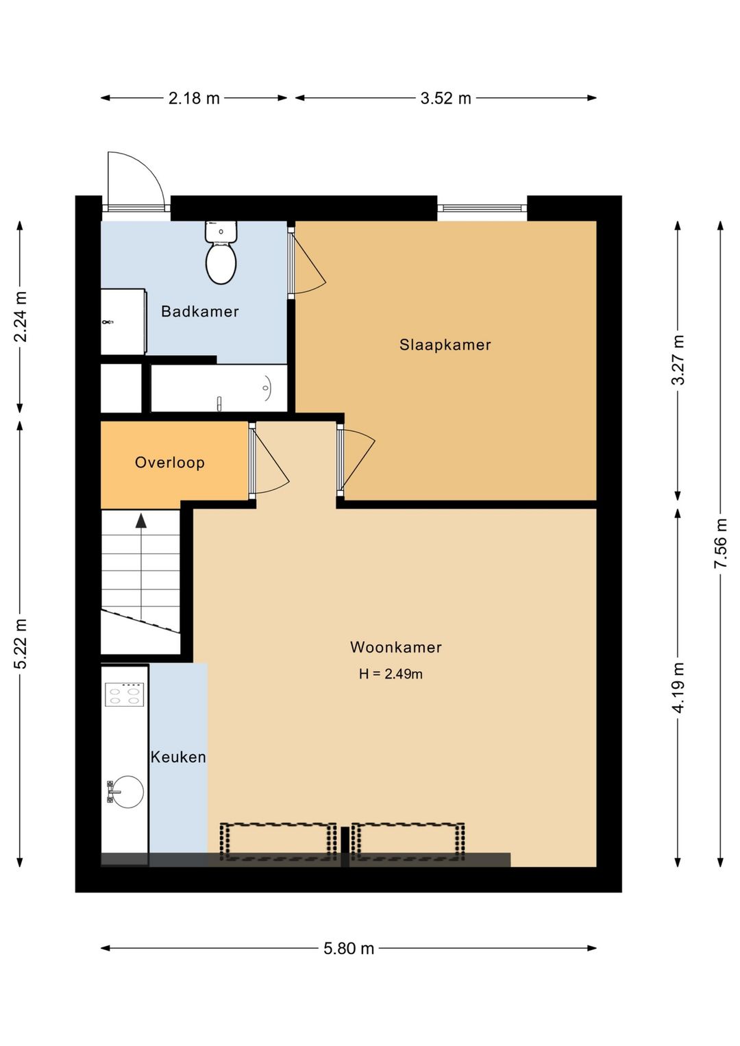 - Zelfstandige bovenverdieping met keuken en badkamer