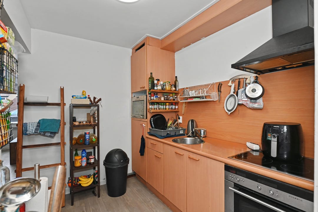 De aanwezige keuken maakt deze verdieping extra praktisch en geschikt voor diverse doeleinden.