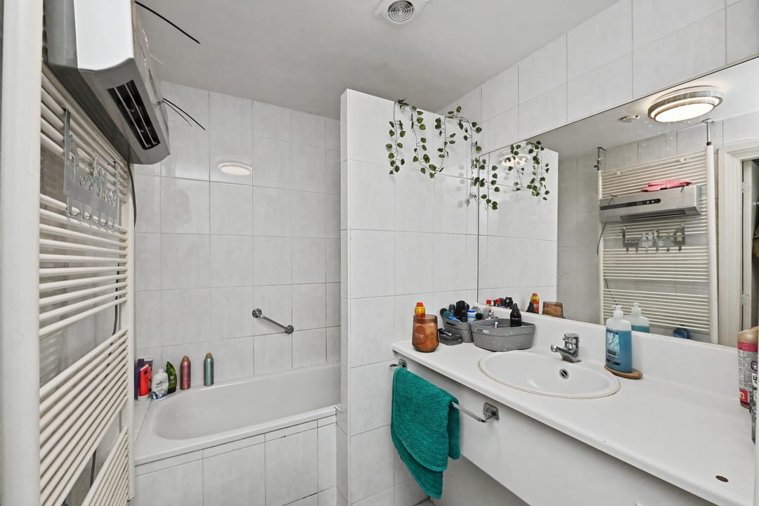De badkamer is volledig betegeld en voorzien van een gestuct plafond. Deze beschikt over een wastafel en een bad-/douchecombinatie. De indeling is functioneel en compleet, waardoor deze verdieping volledig zelfstandig te gebruiken is.