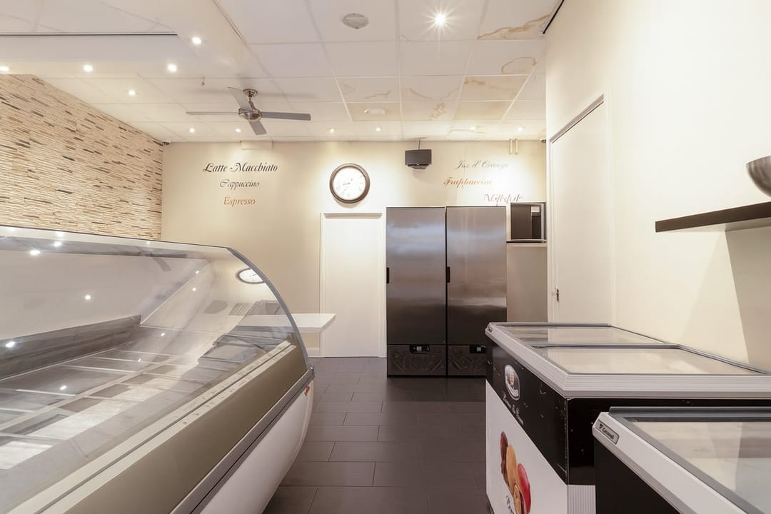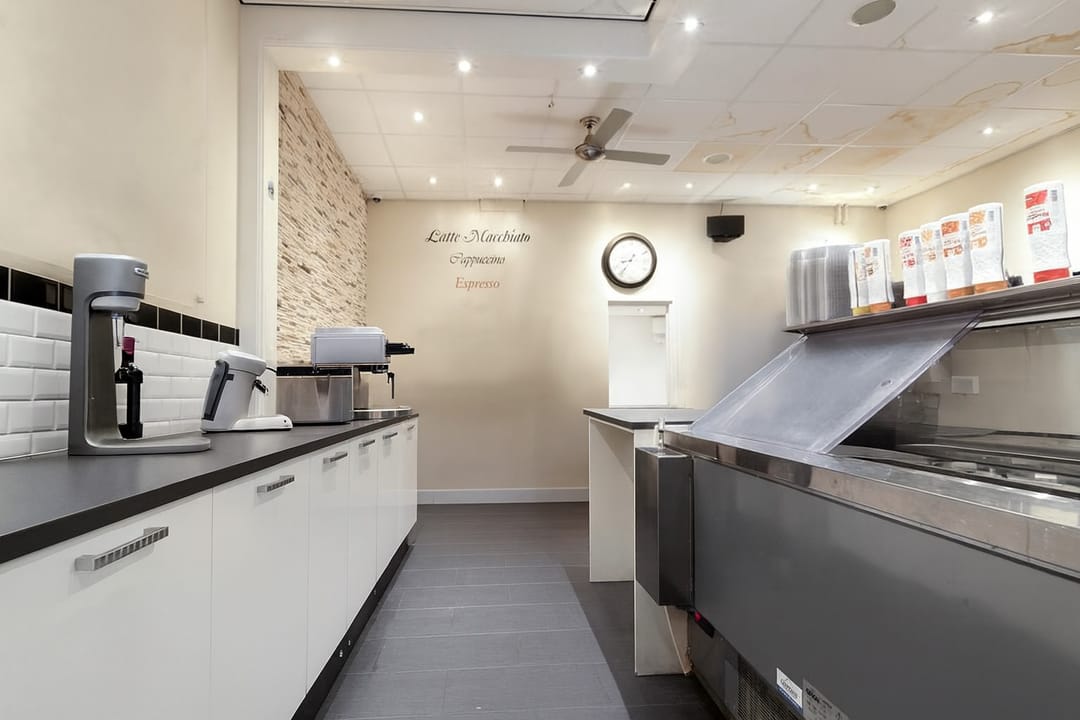 De winkelruimte is toegankelijk via de deur achter de karakteristieke toog in de gevel. Binnen valt direct het grote voorraam op, dat zorgt voor een prettige lichtinval en een open uitstraling richting de straat. Aan de achterzijde bevinden zich een bergruimte, een apart toilet en een compacte keuken: precies de voorzieningen die een huurder nodig heeft voor efficiënt dagelijks gebruik.