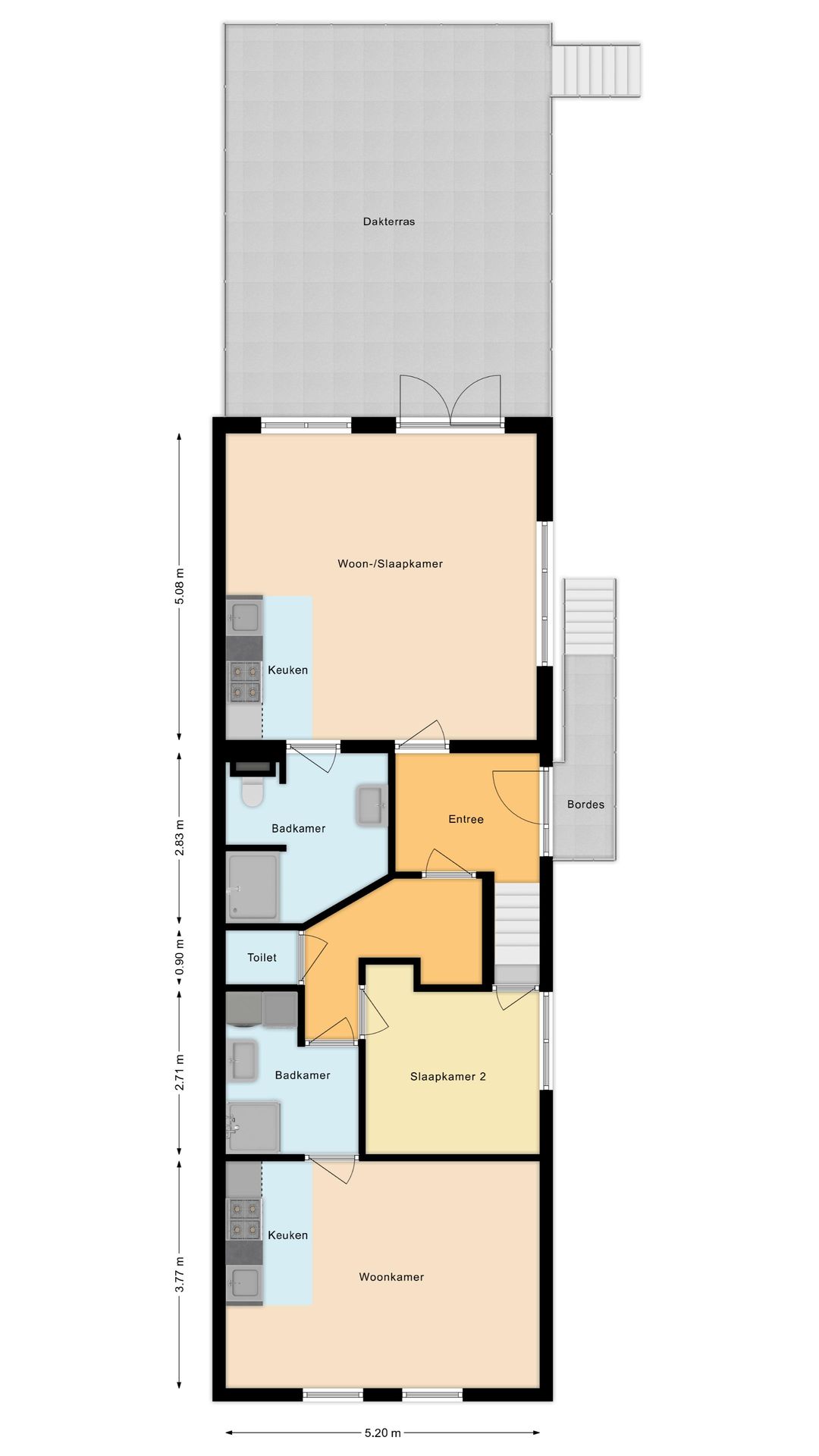 - Appartement 11B (1e etage achterzijde) 32 m2 met een dakterras van ca. 32 m2