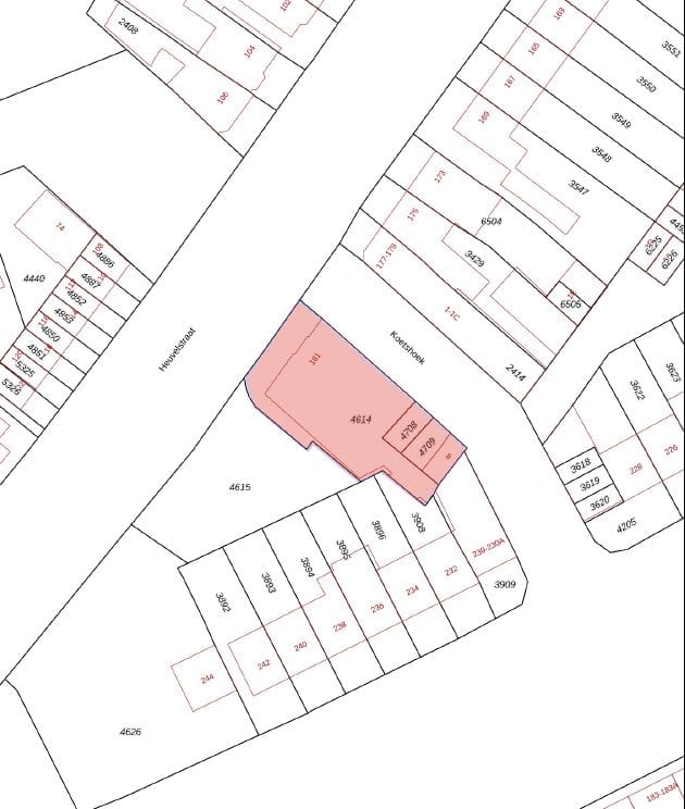 - Heuvelstraat 181: Gemeente Princenhage, sectie I, nummer 4614 (3a 47ca)
