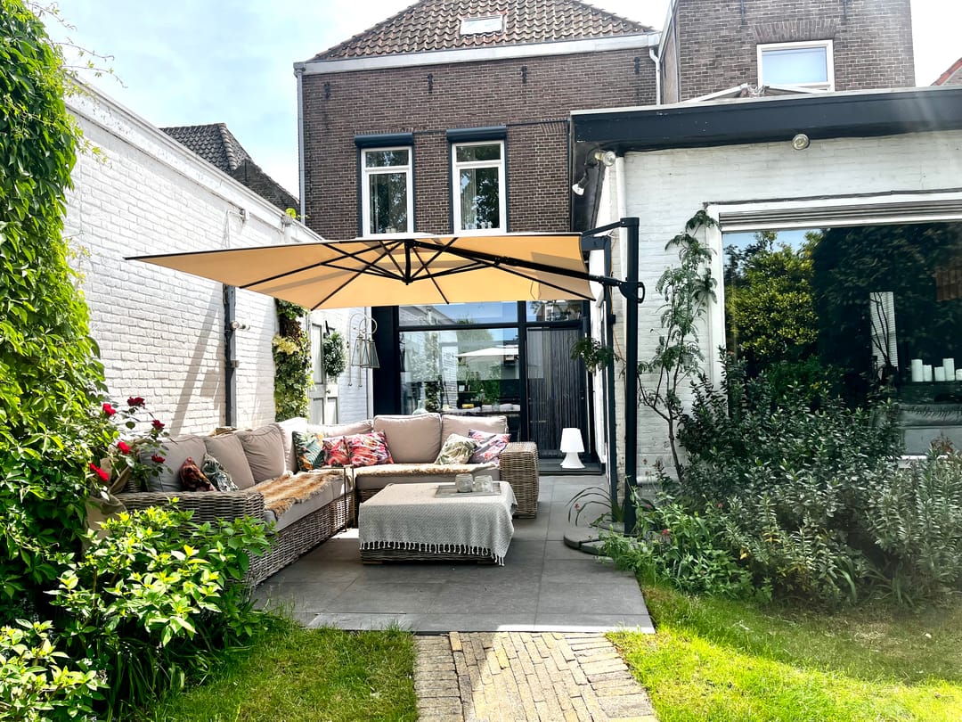 Via de woonkamer en keuken heb je toegang tot de fijne groene achtertuin met stenen berging en achterom.