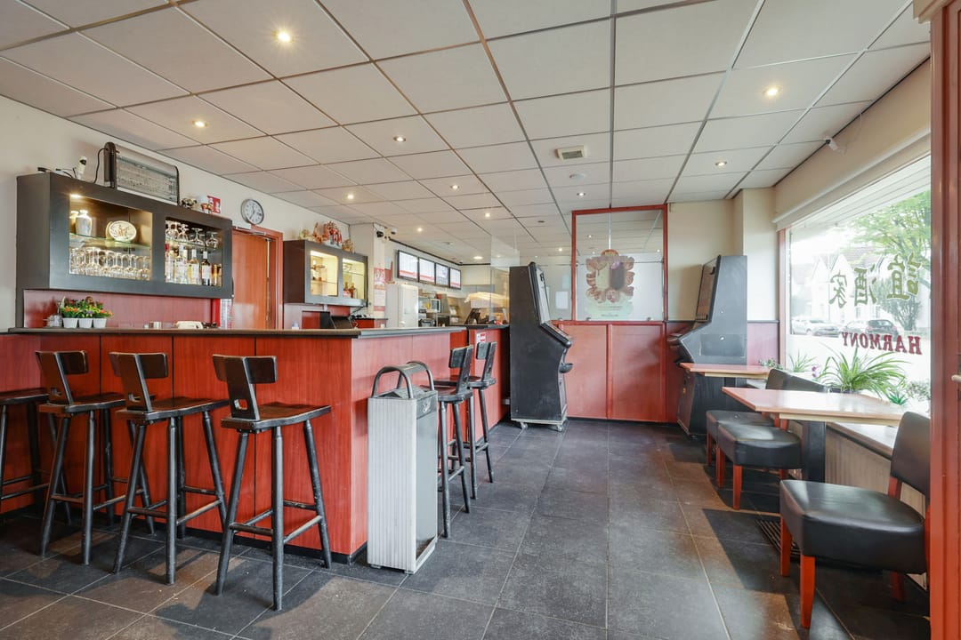 Het restaurant en de snackbar bevinden zich aan de voorzijde van de begane grond en zijn intern met elkaar verbonden. Aan de achterzijde bevindt zich de keuken en opslag. De woning die verbonden is met het restaurant is middels een inpandige trap vanuit de keuken te bereiken en voorzien van een woonverdieping met één slaapkamer op de eerste verdieping en drie slaapkamers op de tweede verdieping. In de kelder bevindt zich meer opslagruimte.