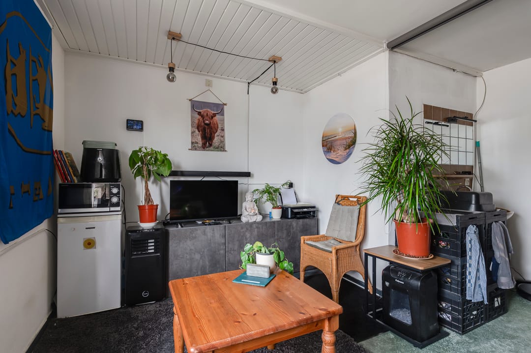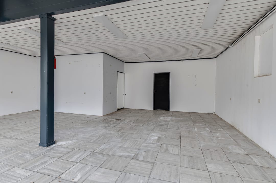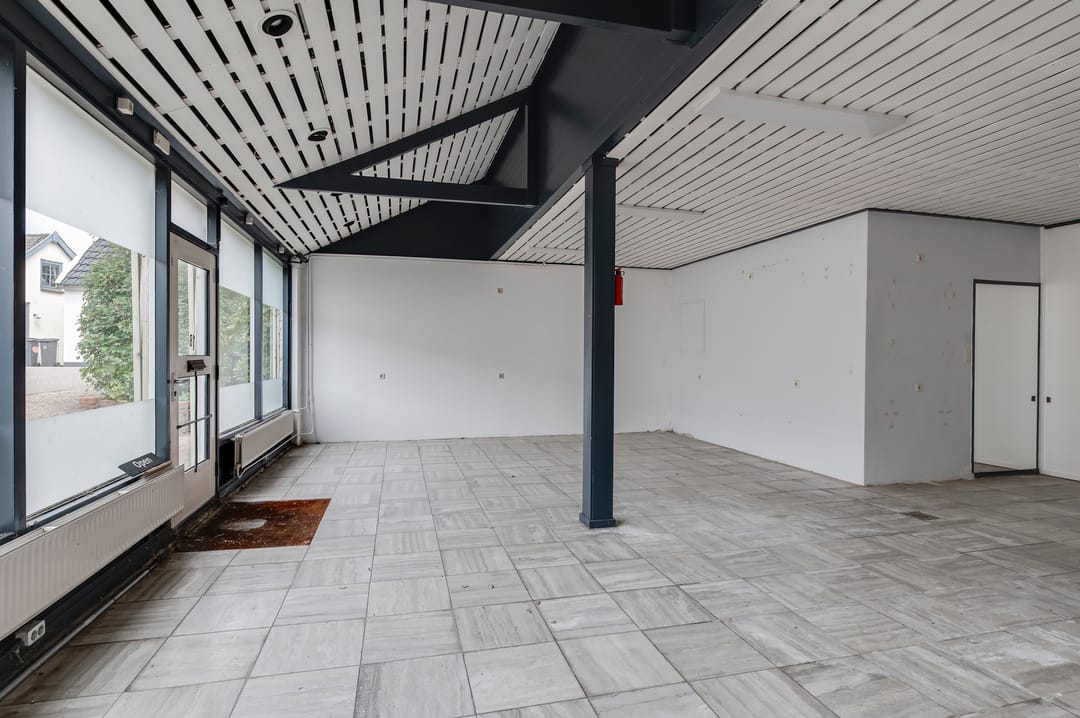 Aangrenzend aan de dijkwoning/kamerverhuur en aan de Krugerstraat ligt de (voormalige) winkelruimte van circa 78 m2. De winkelruimte staat momenteel leeg. Vanwege de functieaanduiding ‘Kamerverhuur’ zou deze ruimte ook benut kunnen worden voor uitbreiding van de kamerverhuur.